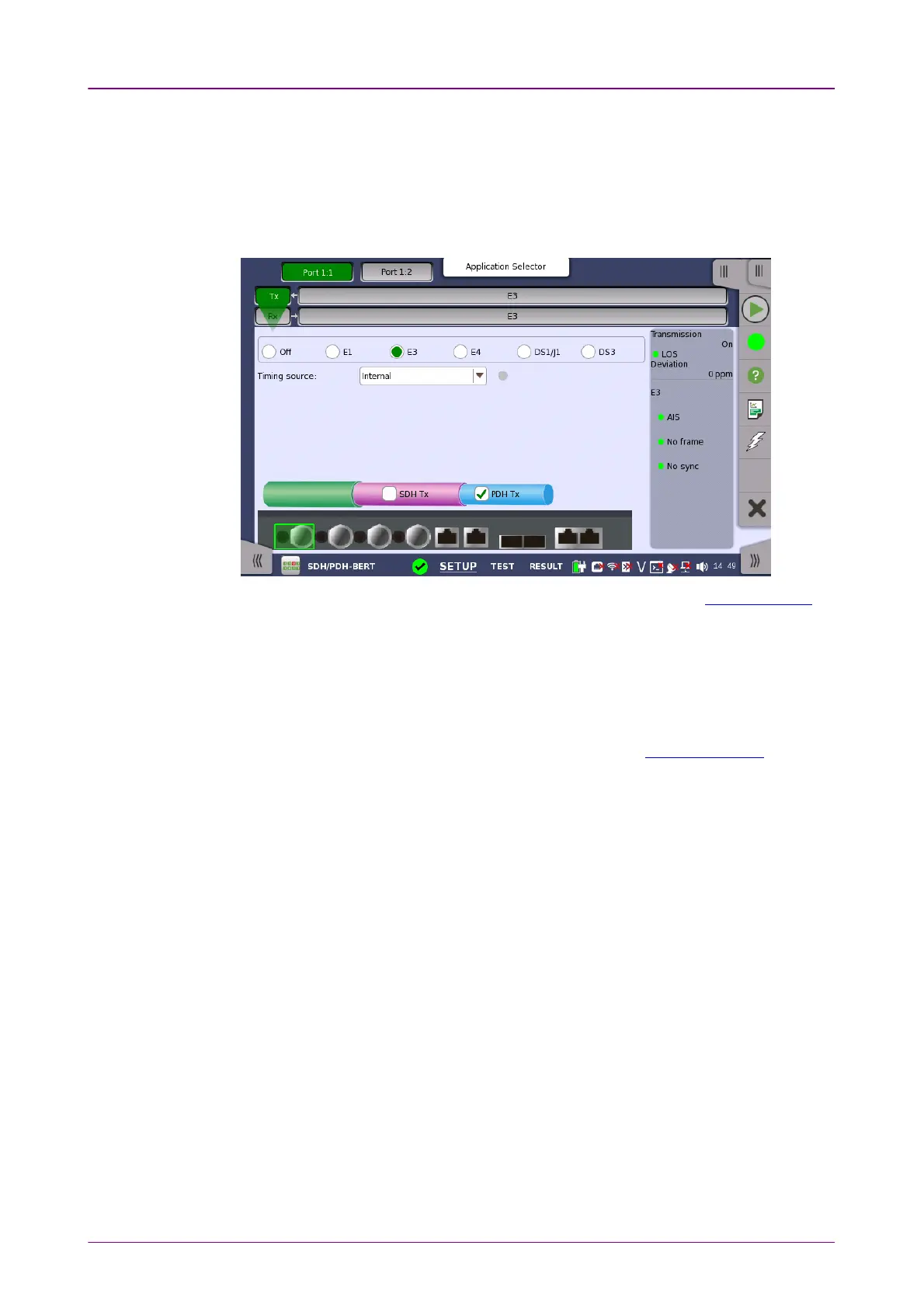 When the transmitter is set up with only an E3 interface, selecting the TxTx button