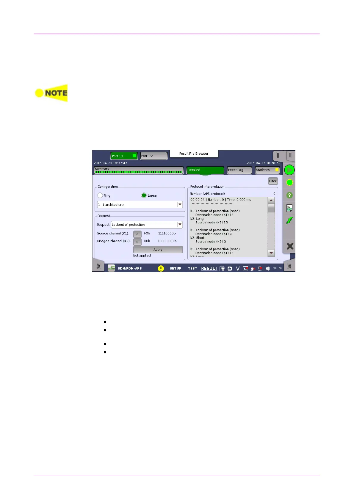 Shows the screen displaying the Protocol interpretation.