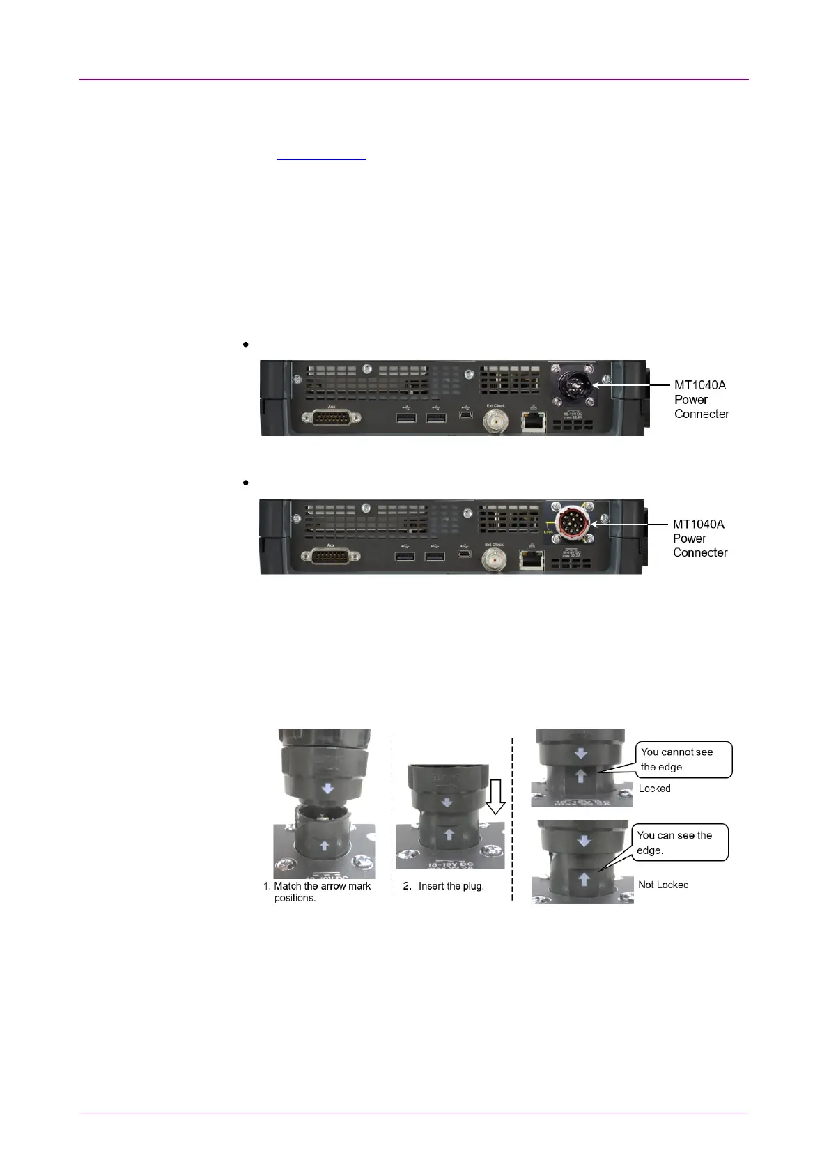 1. With the arrow mark on the DC plug aligned to the arrow mark on the power