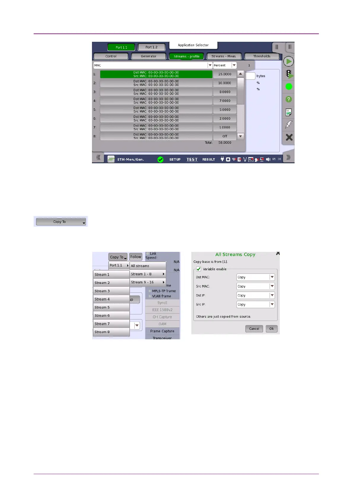 currently configuring to all streams in another port or to a single stream.