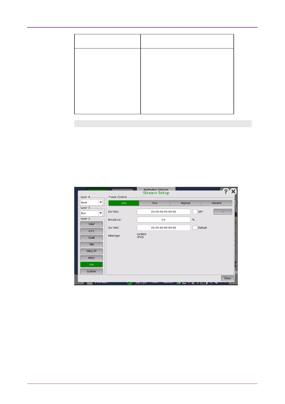 Ethernet frame content for a specific stream. Use the buttons in the following