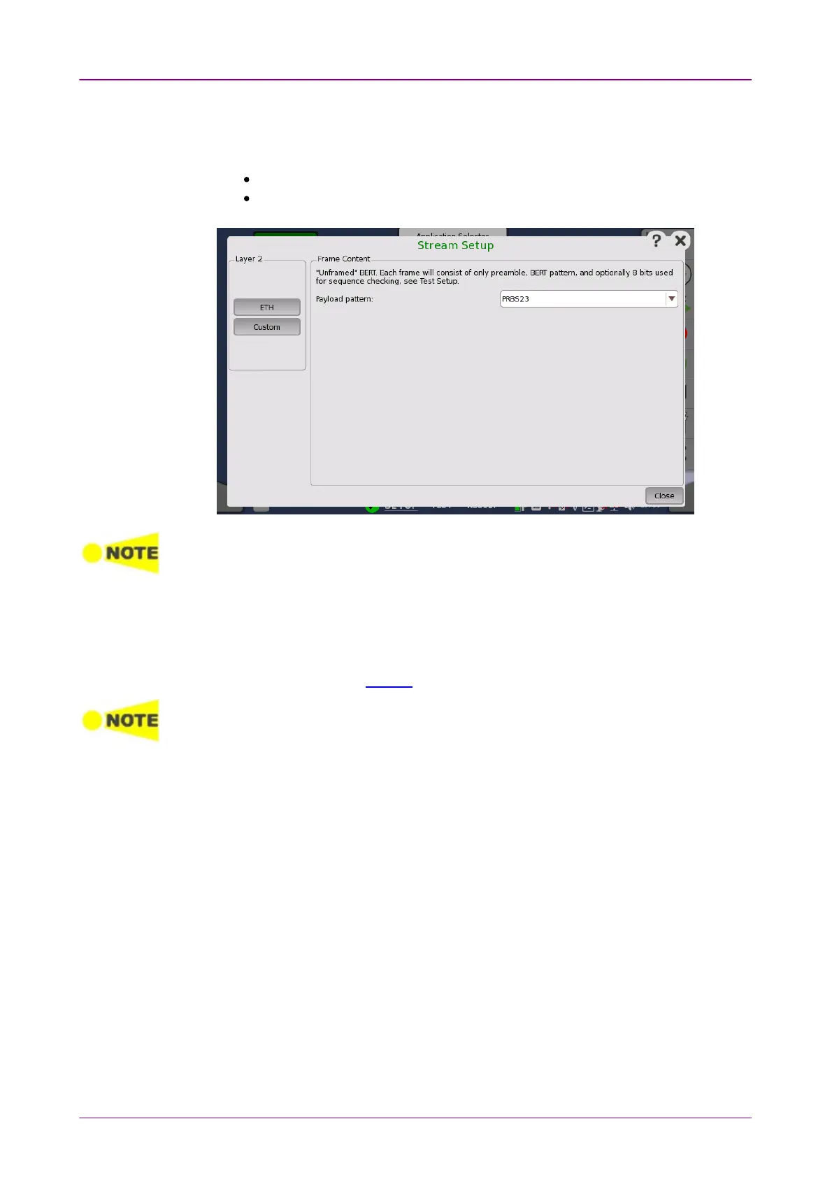 Touch the Payload pattenPayload patten field to set the pattern for the bit error rate test. Each