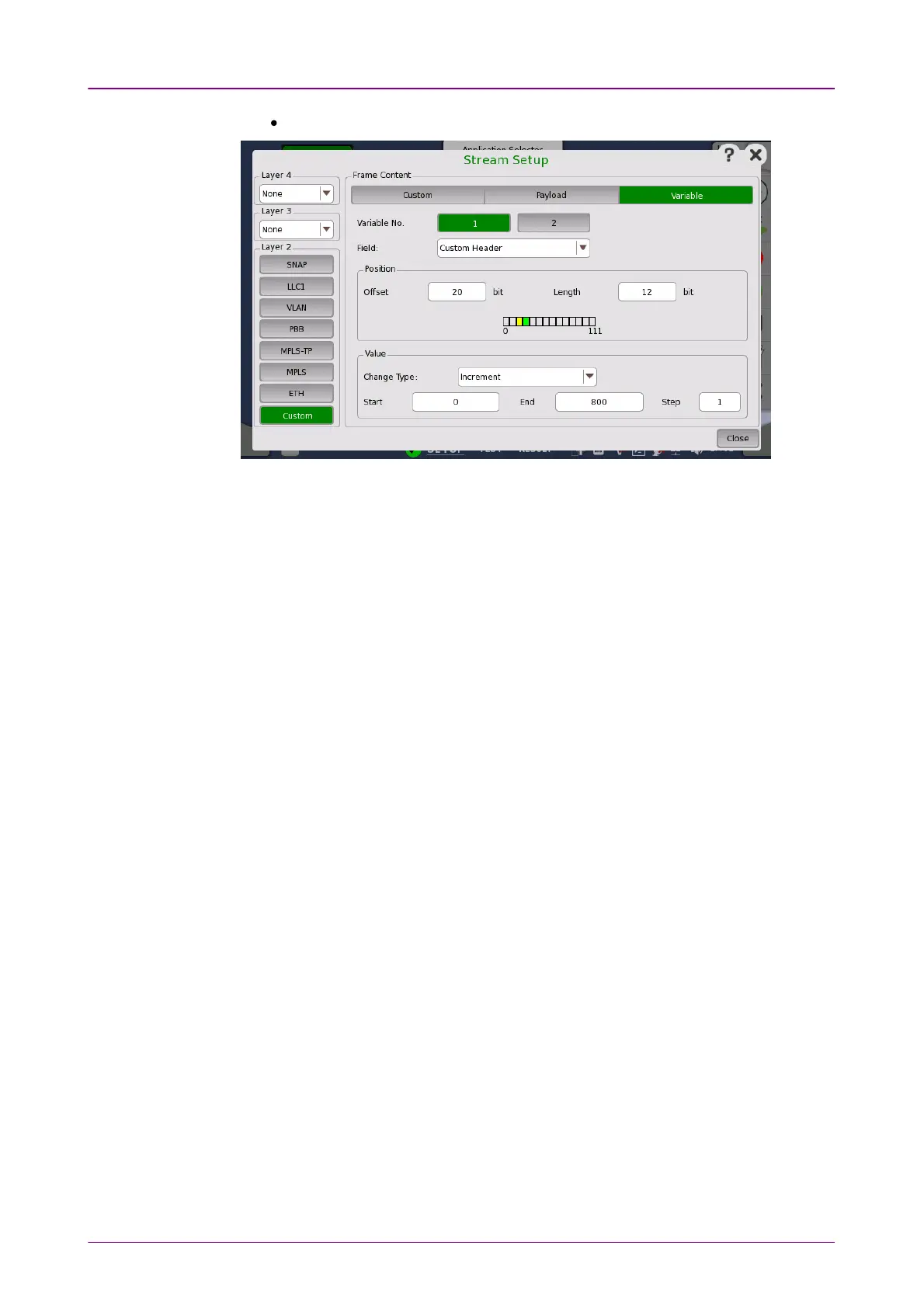 When Custom button in Layer 2 is green, row of boxes appears. A box indicates