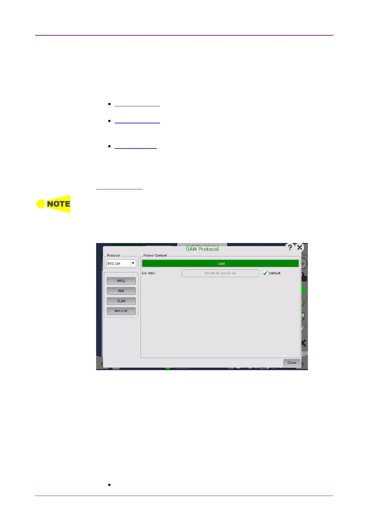 In the OAM ProtocolOAM Protocol dialog box the buttons on the left-hand side allow you to