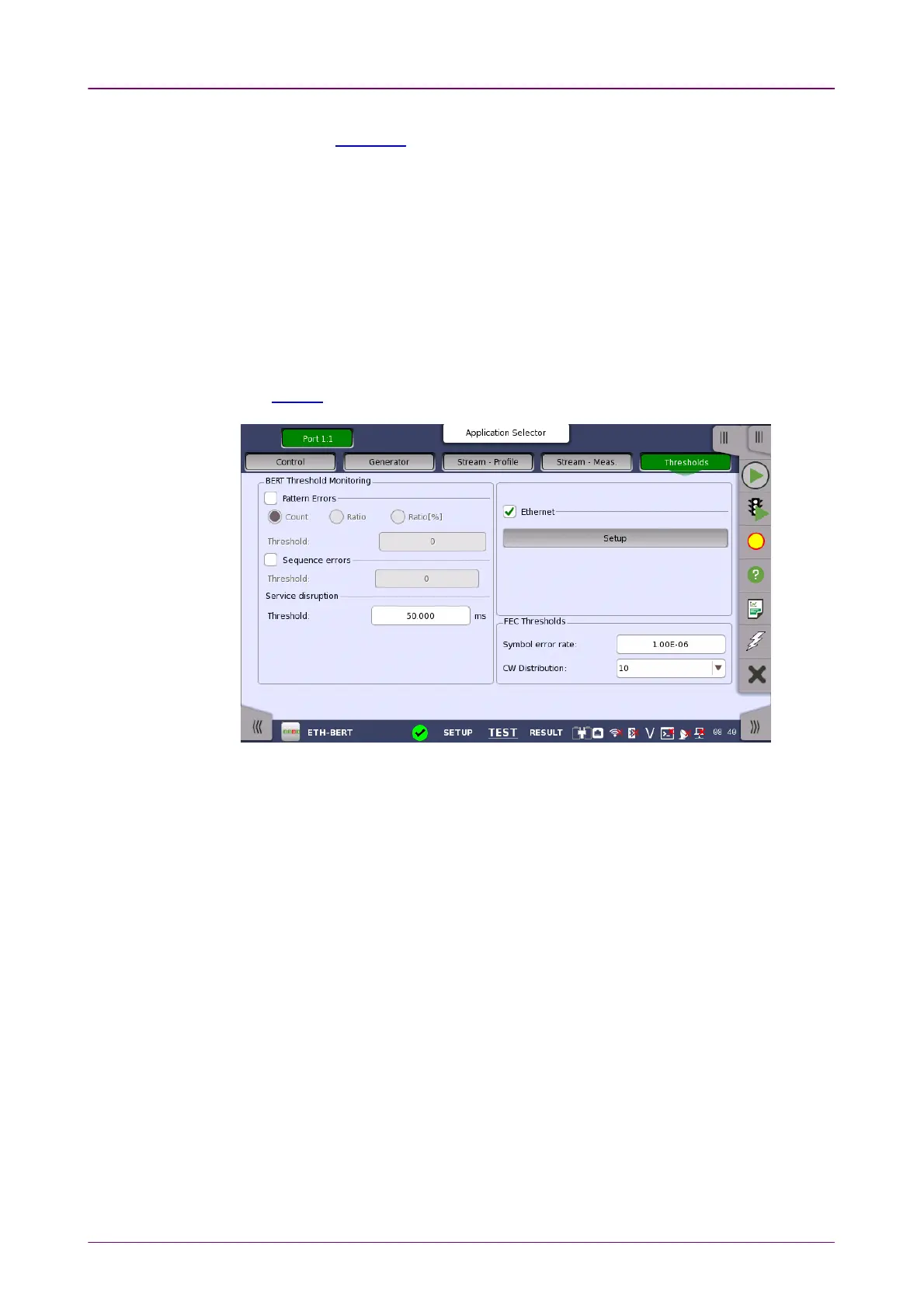 Allows you to enable monitoring of pattern errors (i.e. bit errors) and to set up