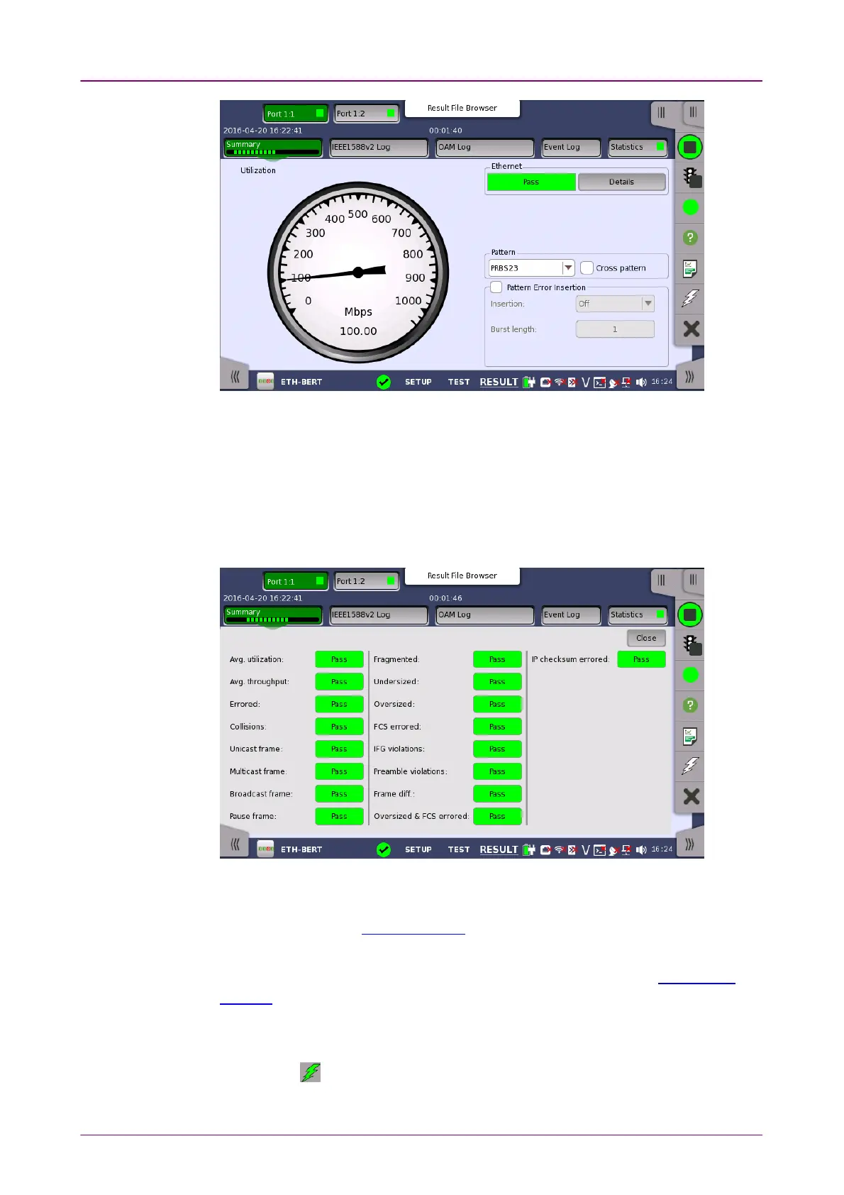 Displays the results of Transport test. This result appears if 'Transport' check