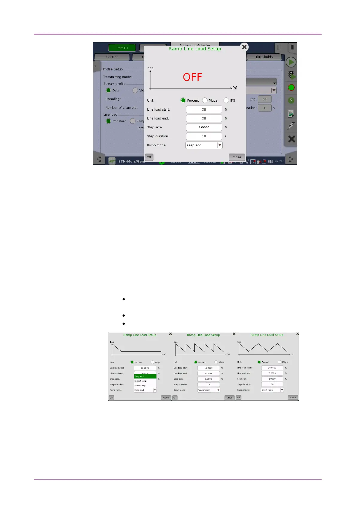 The line load unit can be specified from PercentPercent, and MbpsMbps. Touching OffOff at
