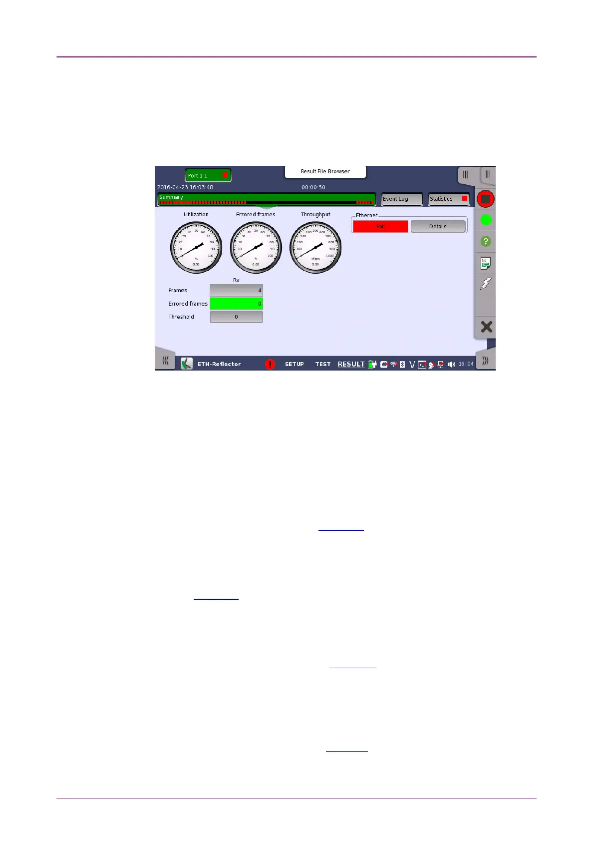When you go to the test results of the Ethernet Reflector application, the