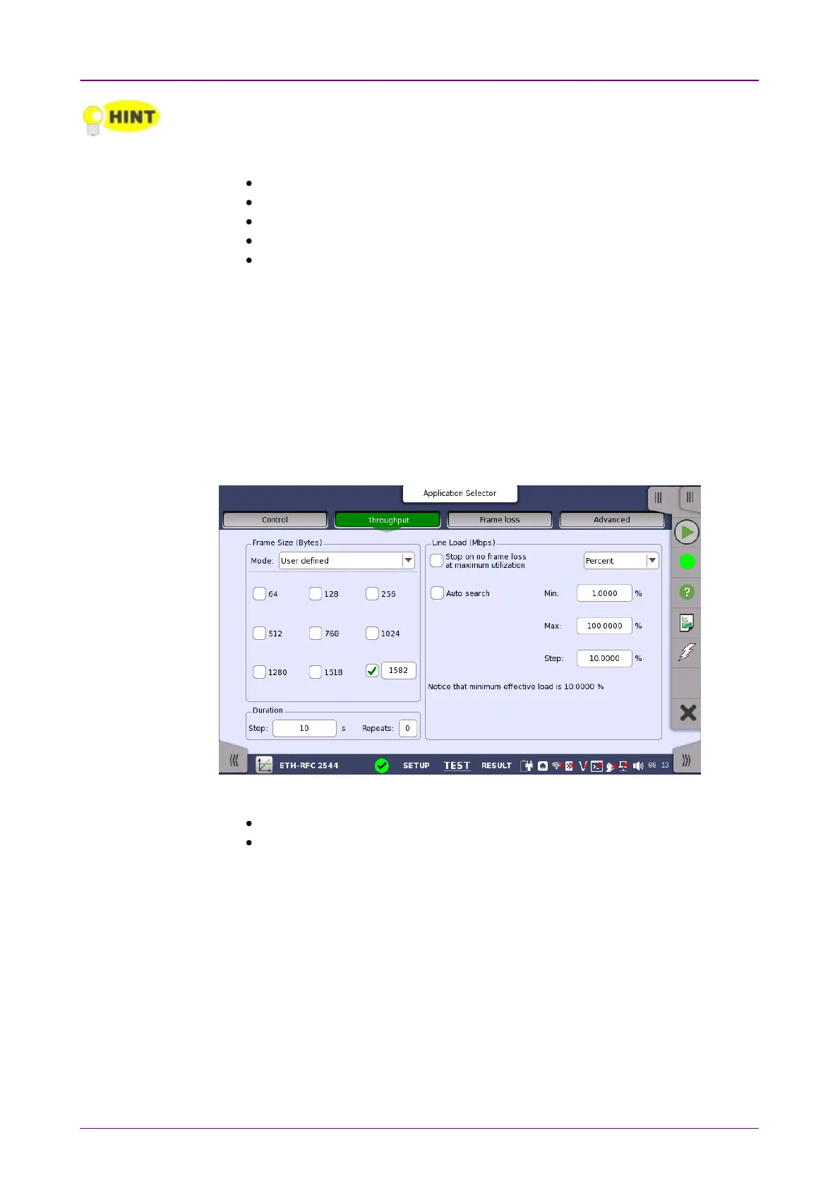 Note that you cannot select 'Throughput and Frame Loss' and 'Throughput' /