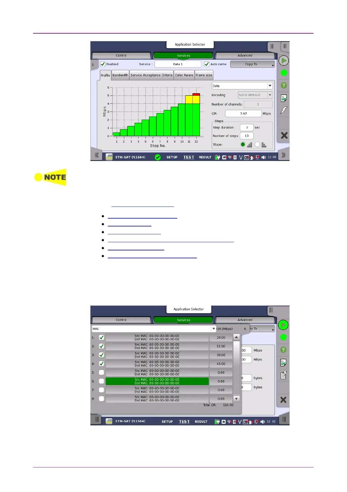 Select the services that are to be tested. Up to 8 services can be specified,