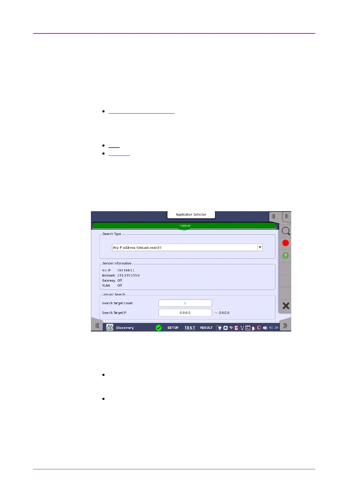 The following screen is displayed to set the test of the Discovery application.