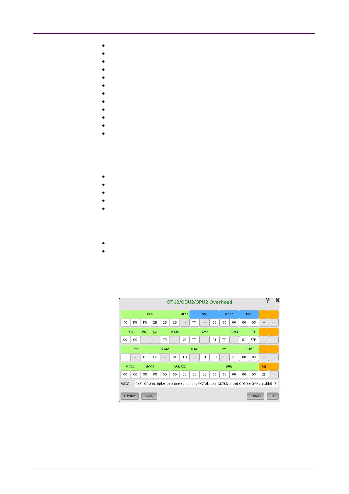 you to configure it. Blue fields are OTU overhead. Green fields except FAS and