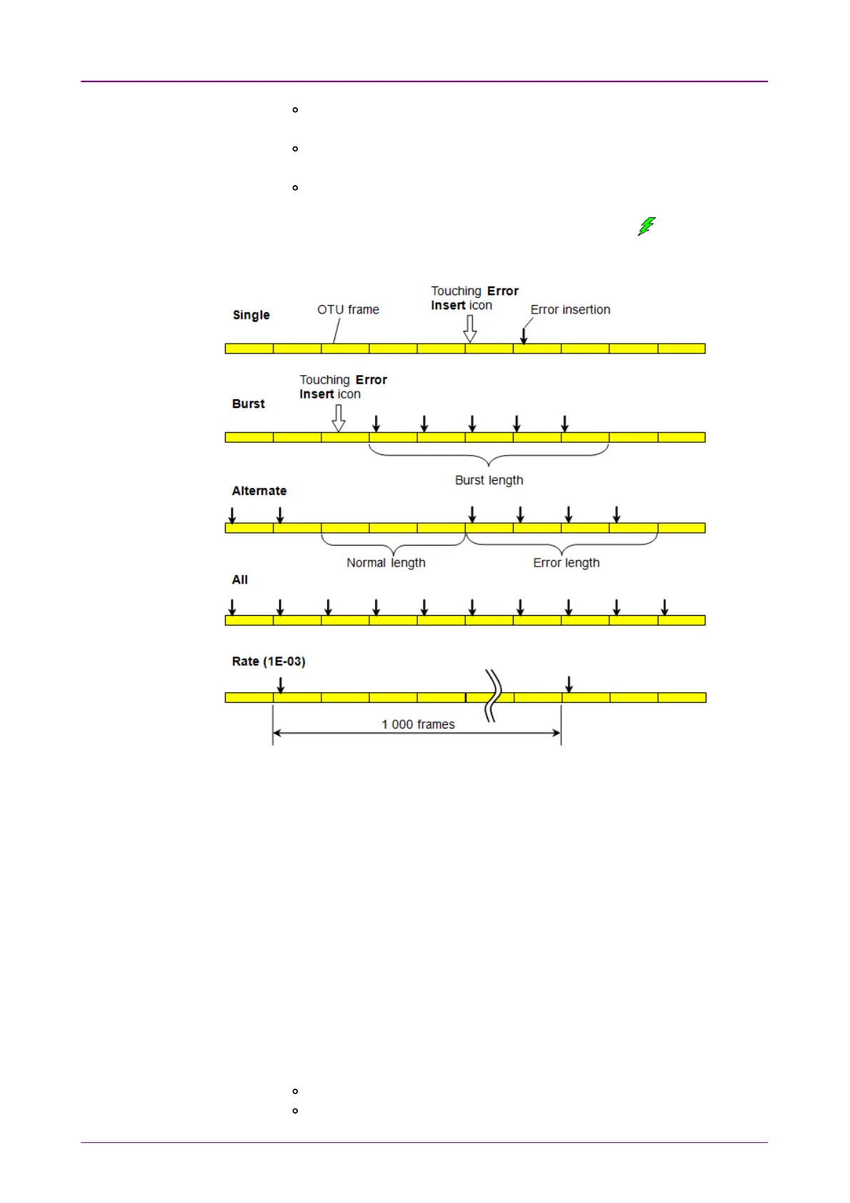 RateRate: Inserts errors in the specified rate continuously. The Error Insert