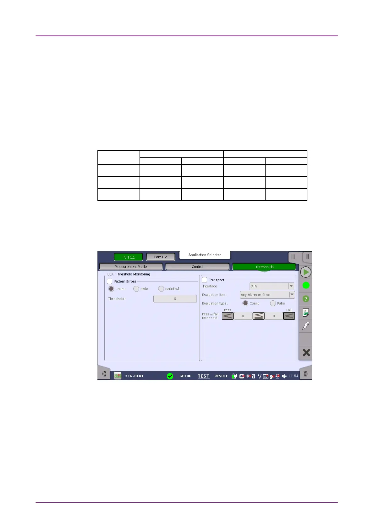 Allows you to enable monitoring of pattern errors (i.e. bit errors) and to set up