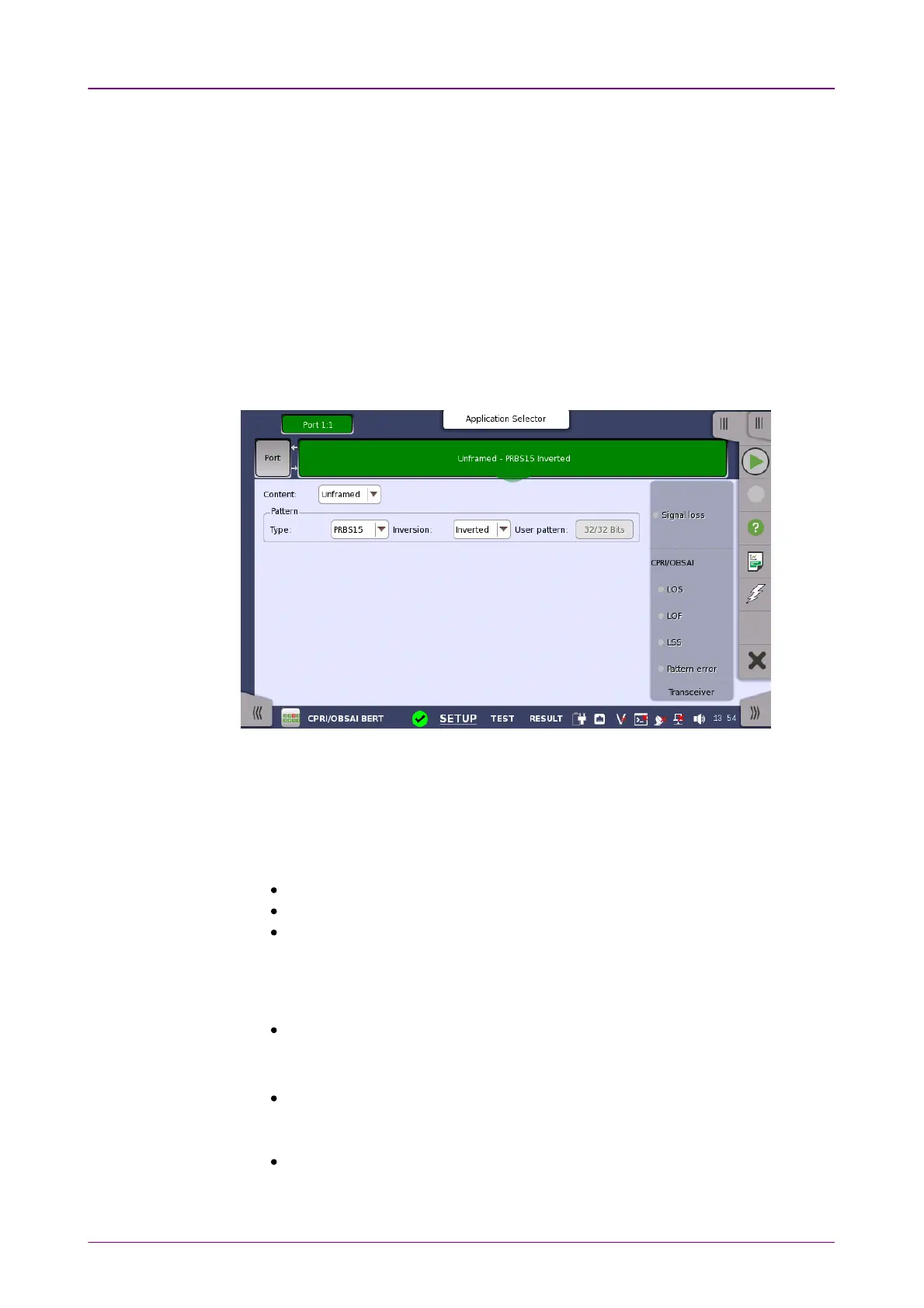 The UnframedUnframed, CPRI LinkCPRI Link or OBSAI LinkOBSAI Link button appears in the navigation area.