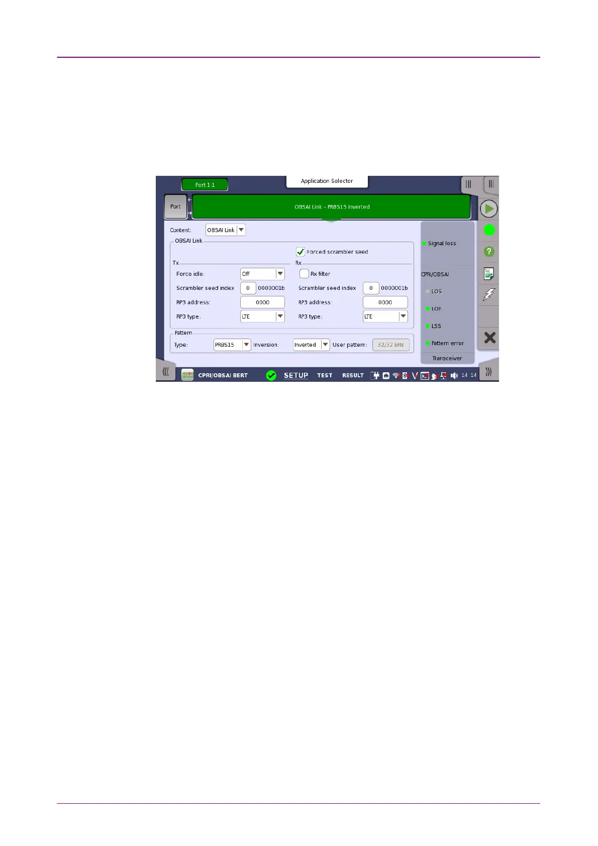 Set the OBSAI Link conditions, if ContentContent is set to "OBSAI Link" and Port modePort mode