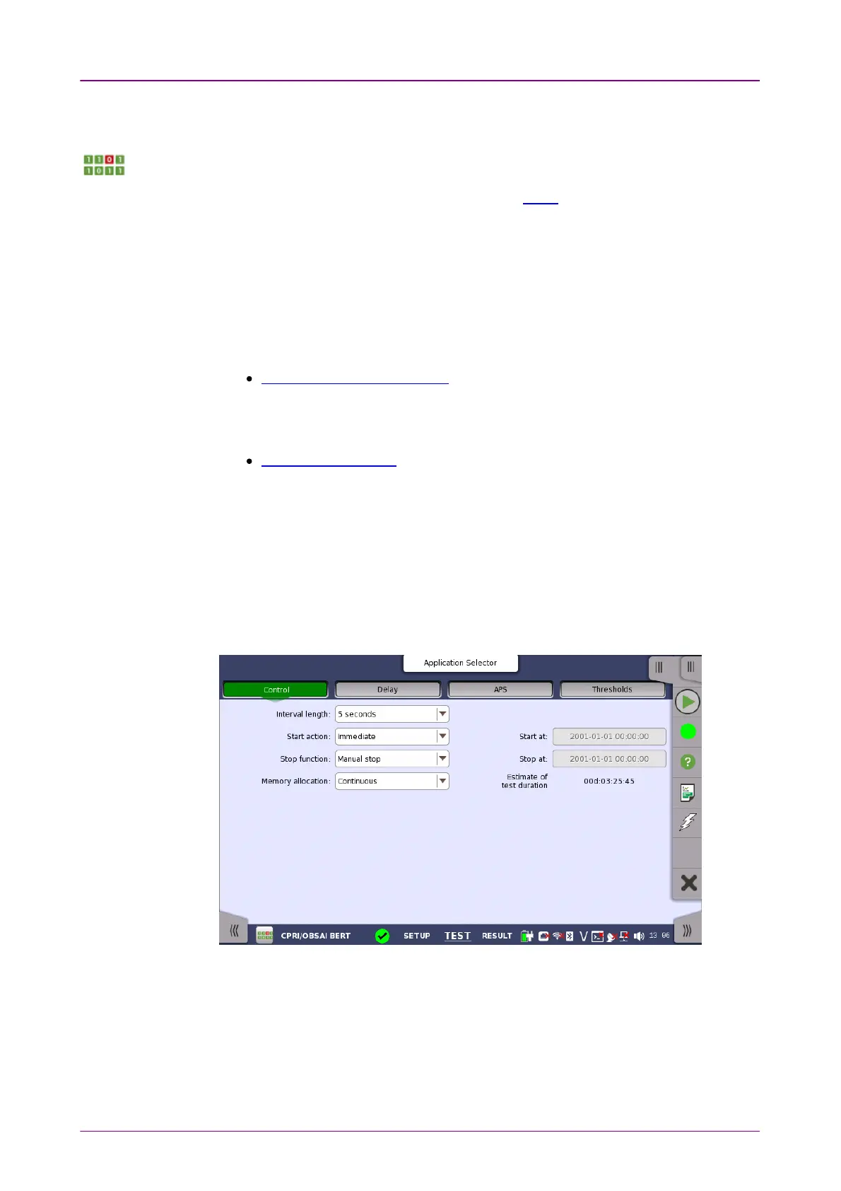 When you proceed to the test setup of the CPRI/OBSAI BERT application, the