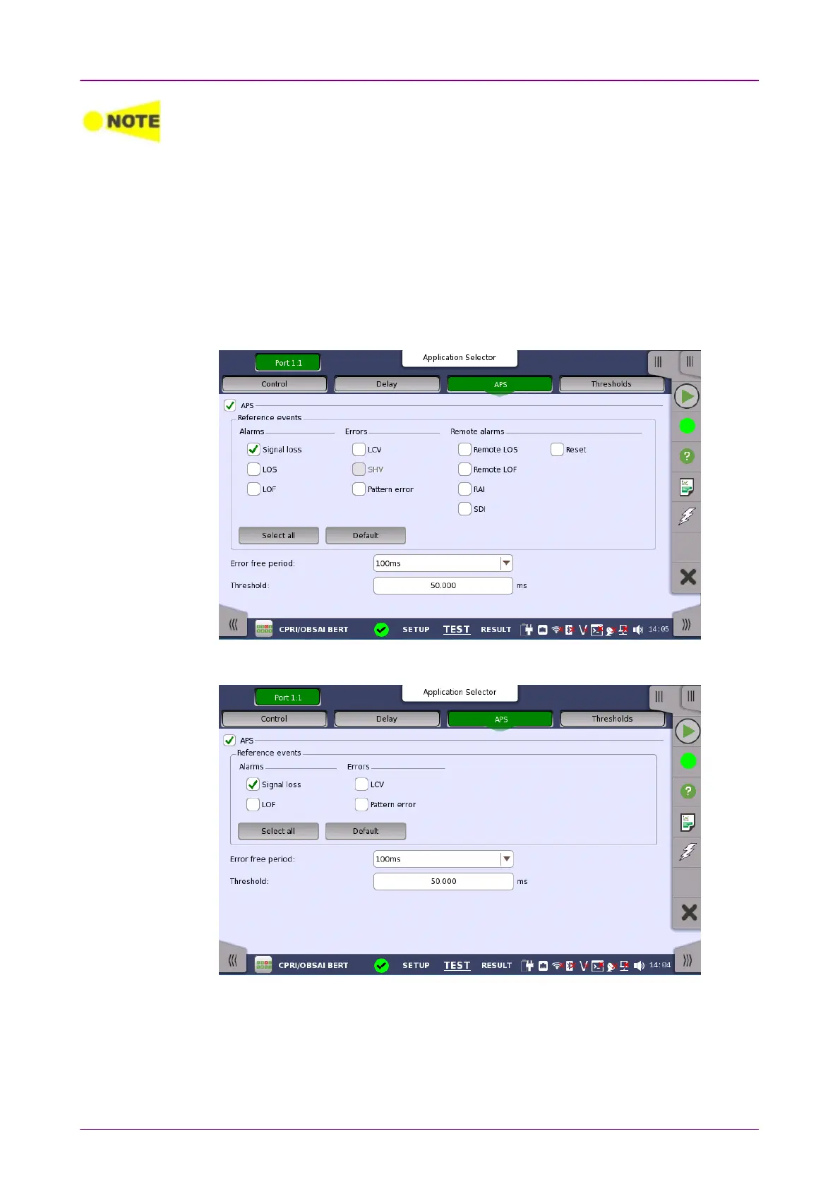 Select the check box of AlarmsAlarms, ErrorsErrors or Remote alarmsRemote alarms for setting to