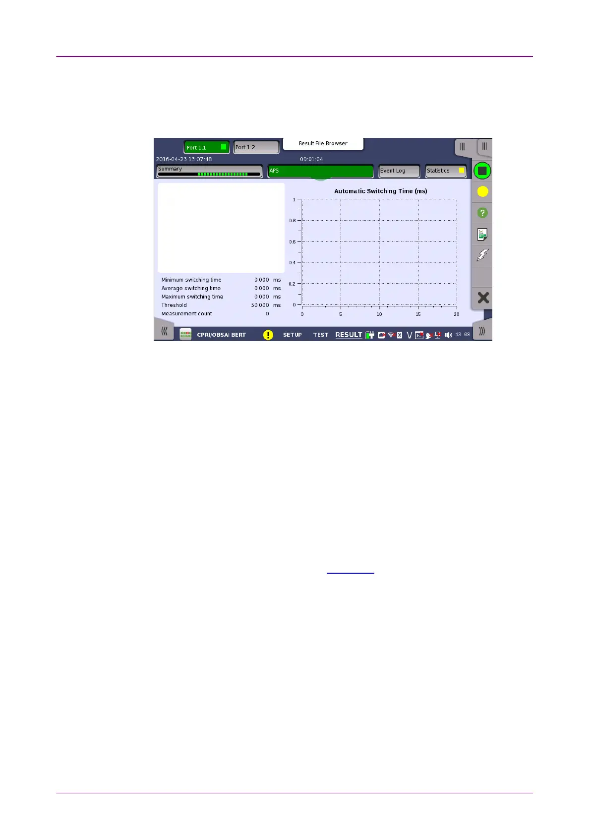 If APS is selected on the Test screen, APSAPS button appears in Navigation area.