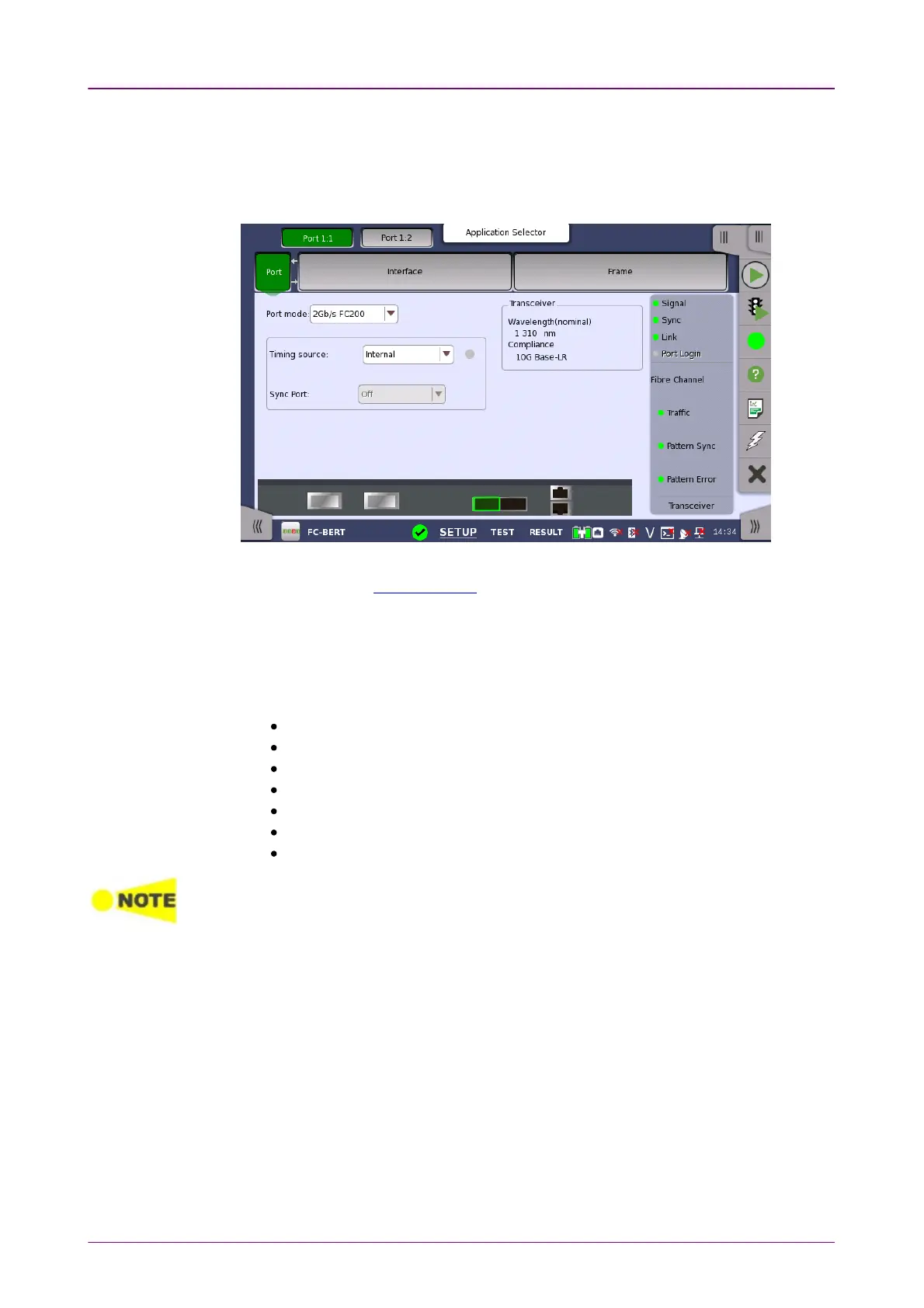 When the port is set up with a Fibre Channel interface, touching the PortPort button