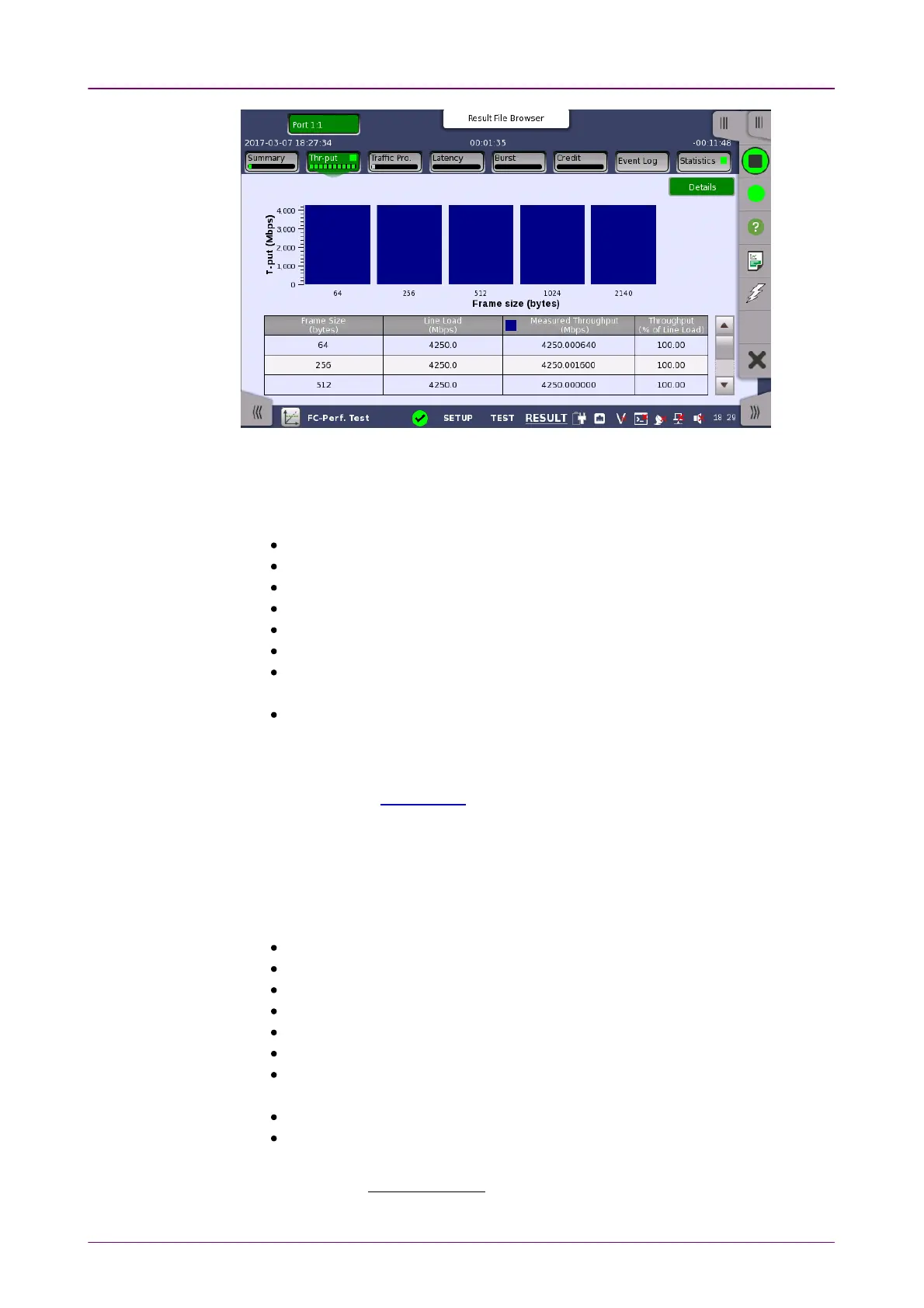 This screen displays the results of the Throughput test.