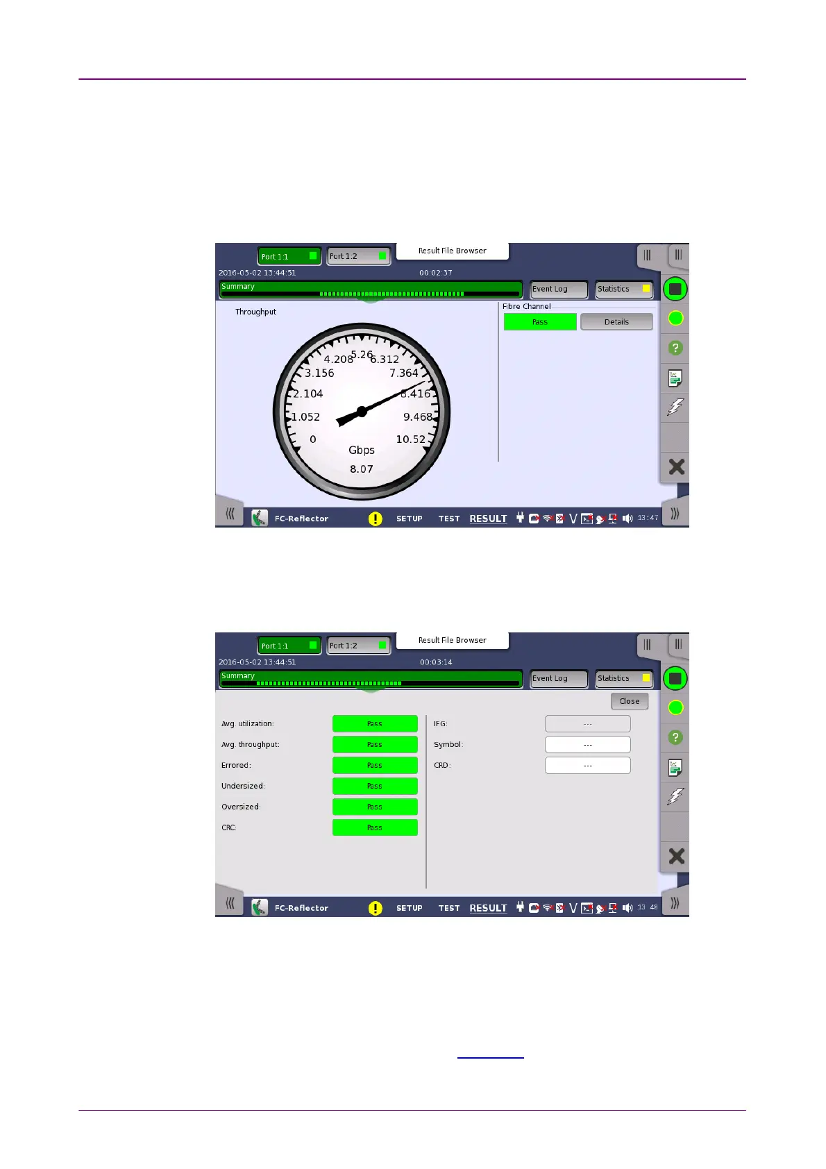 Utilization, Errored frames and Throughput can be enlarged by touching on