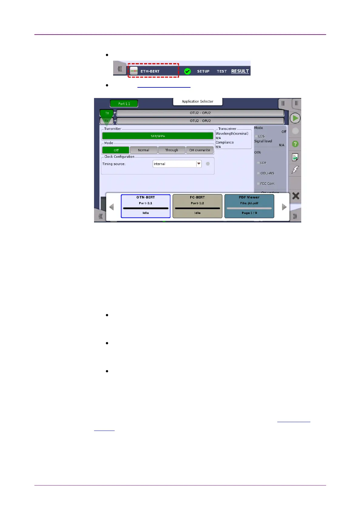 currently selected port and layer. You can access more detailed status