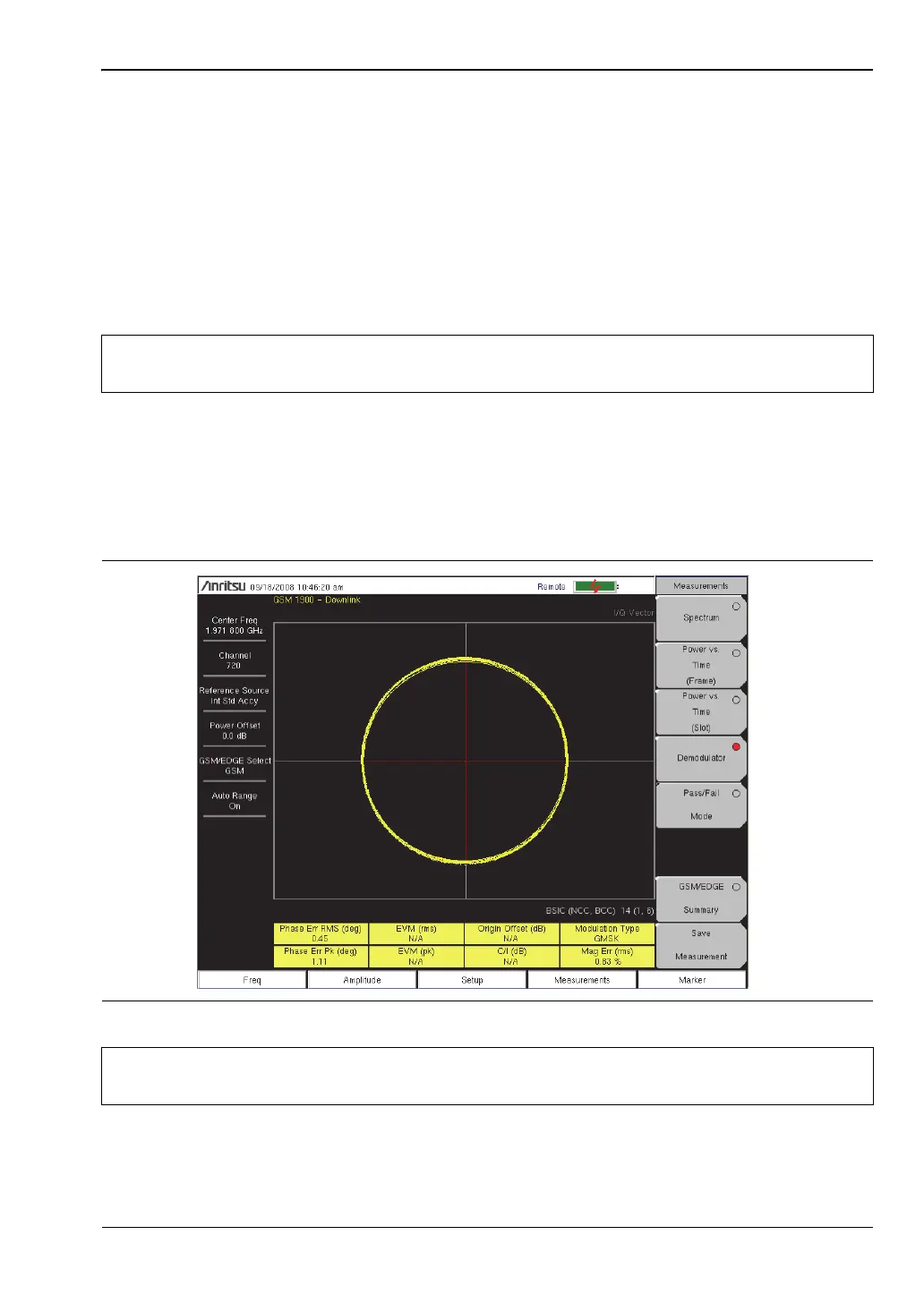 This measurement demodulates the GSM/GPRS/EDGE signal and displays the vector with