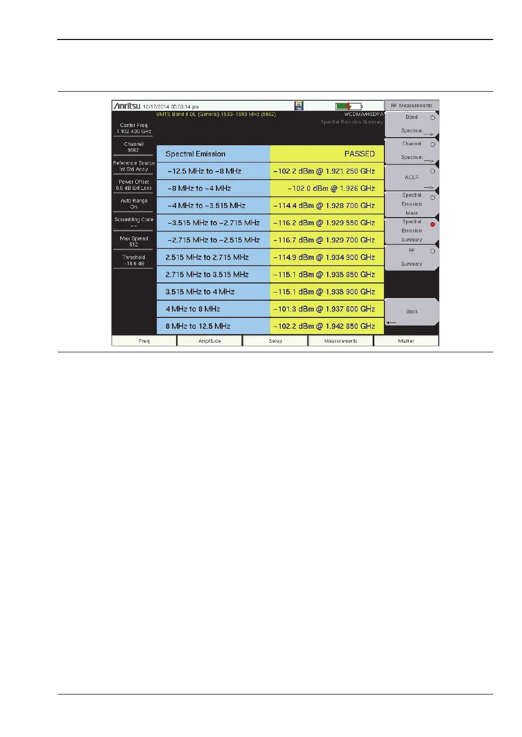 5. Press the Spectral Emission Summary submenu key to display the Spectral Emission