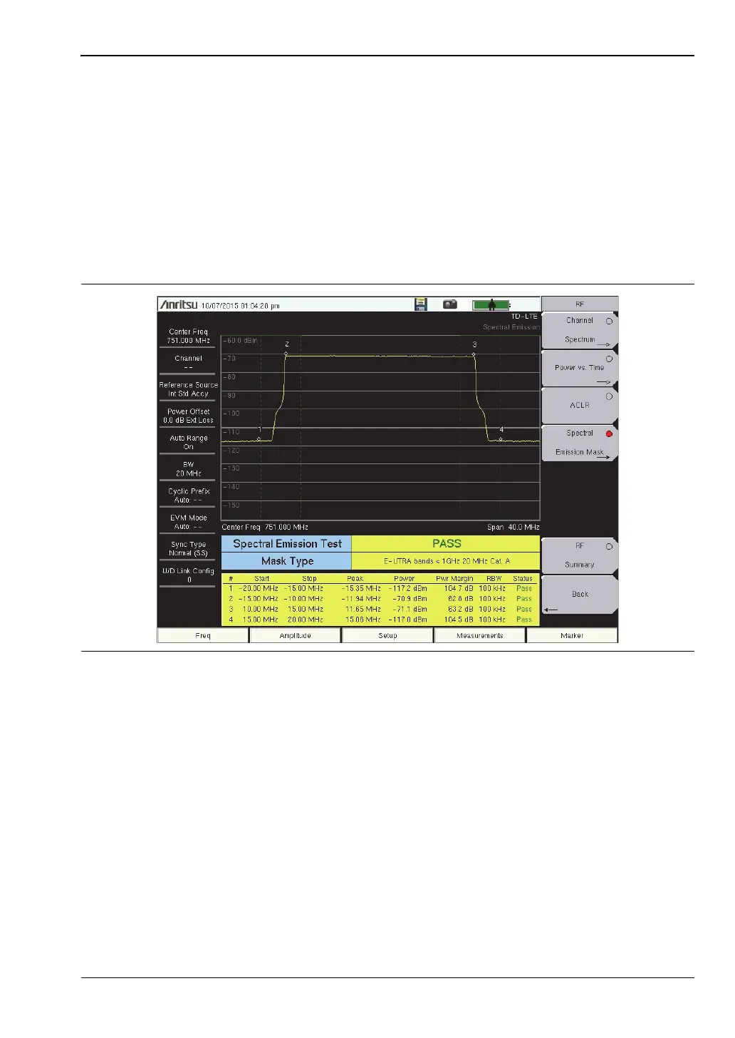 3. Press the Spectral Emission Mask submenu key to activate the Spectral Emission