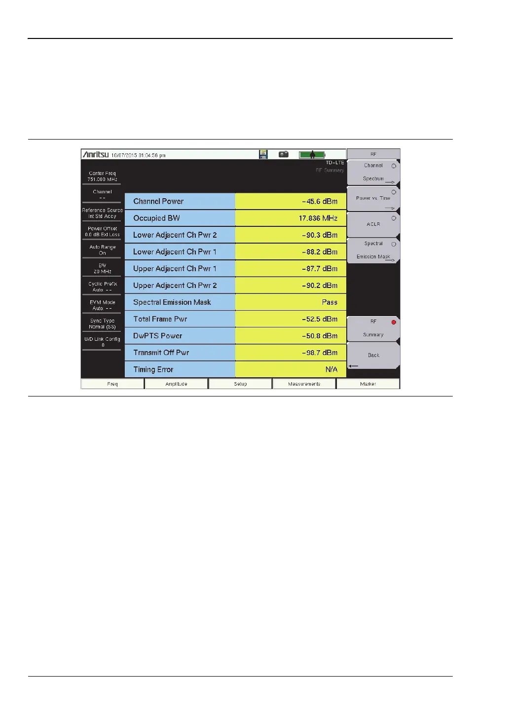 3. Press the RF Summary submenu key to activate and display the RF measurements in