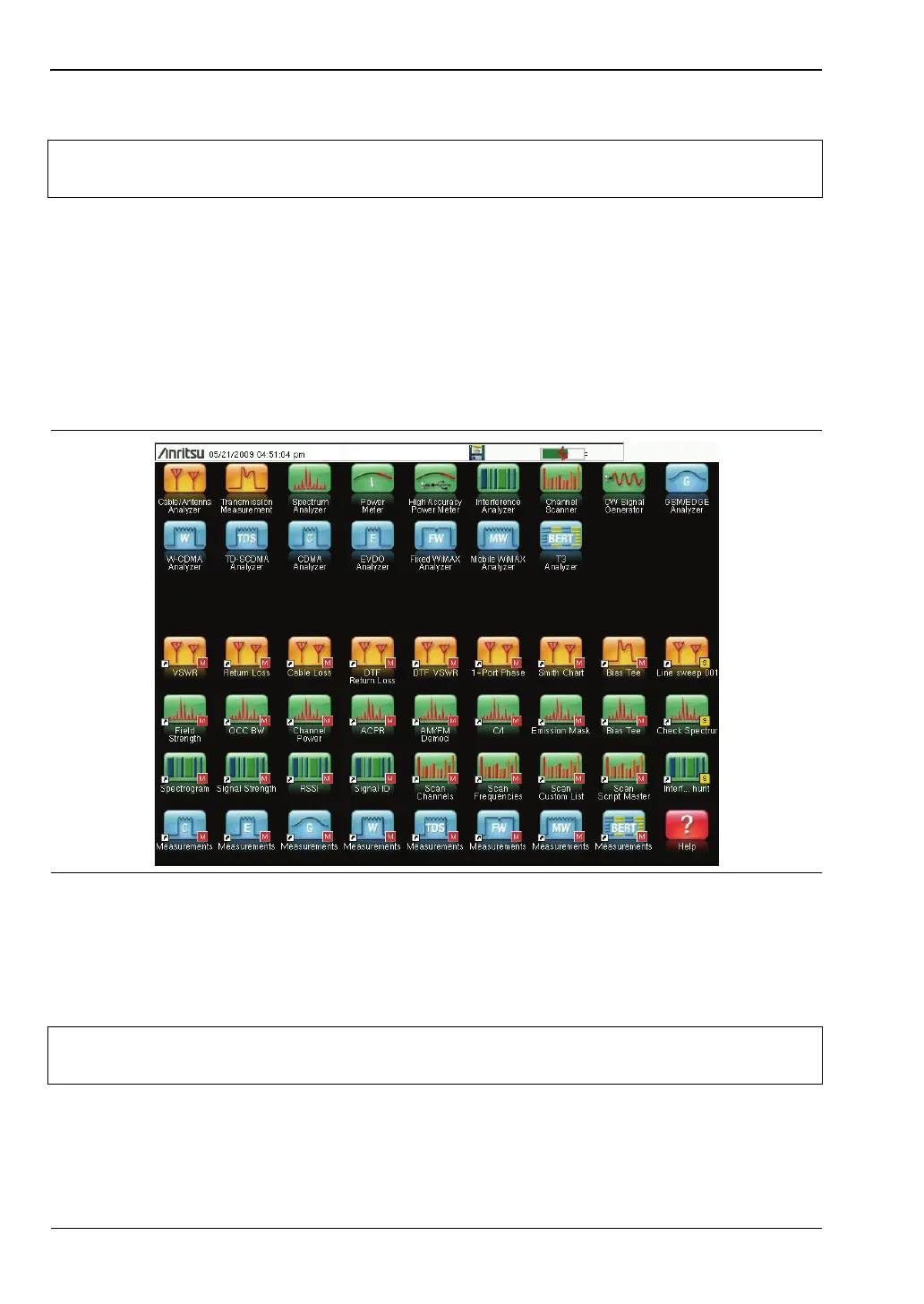 Figure 2-3 shows the Menu key screen with shortcut icons for the installed measurement