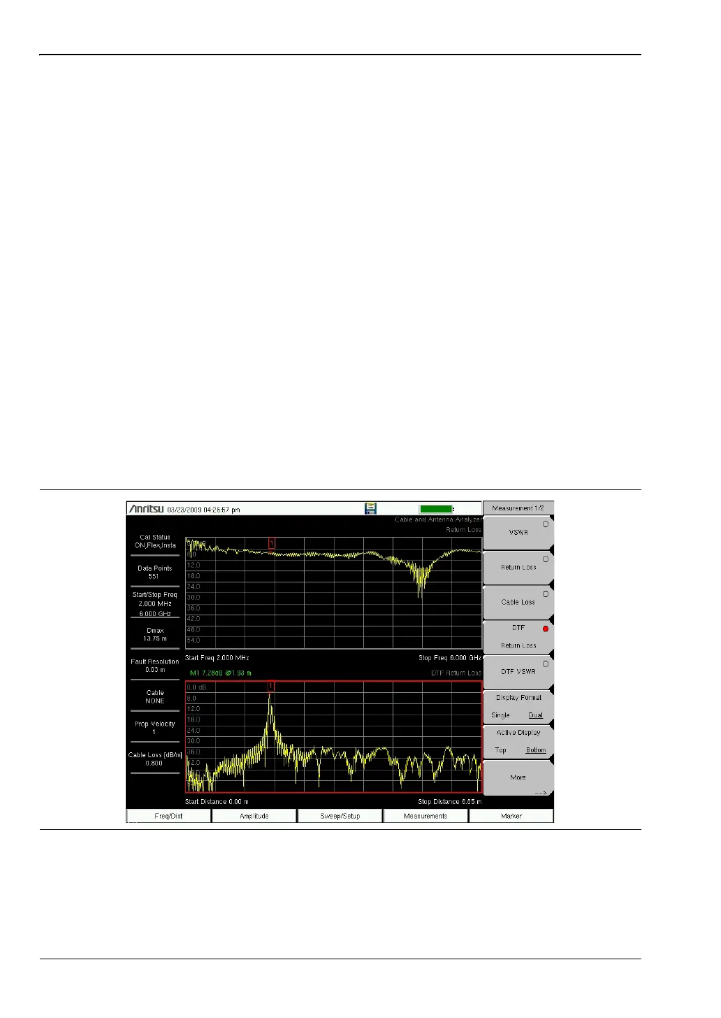 measurements either on the top or bottom. Smith Chart is not supported in dual display