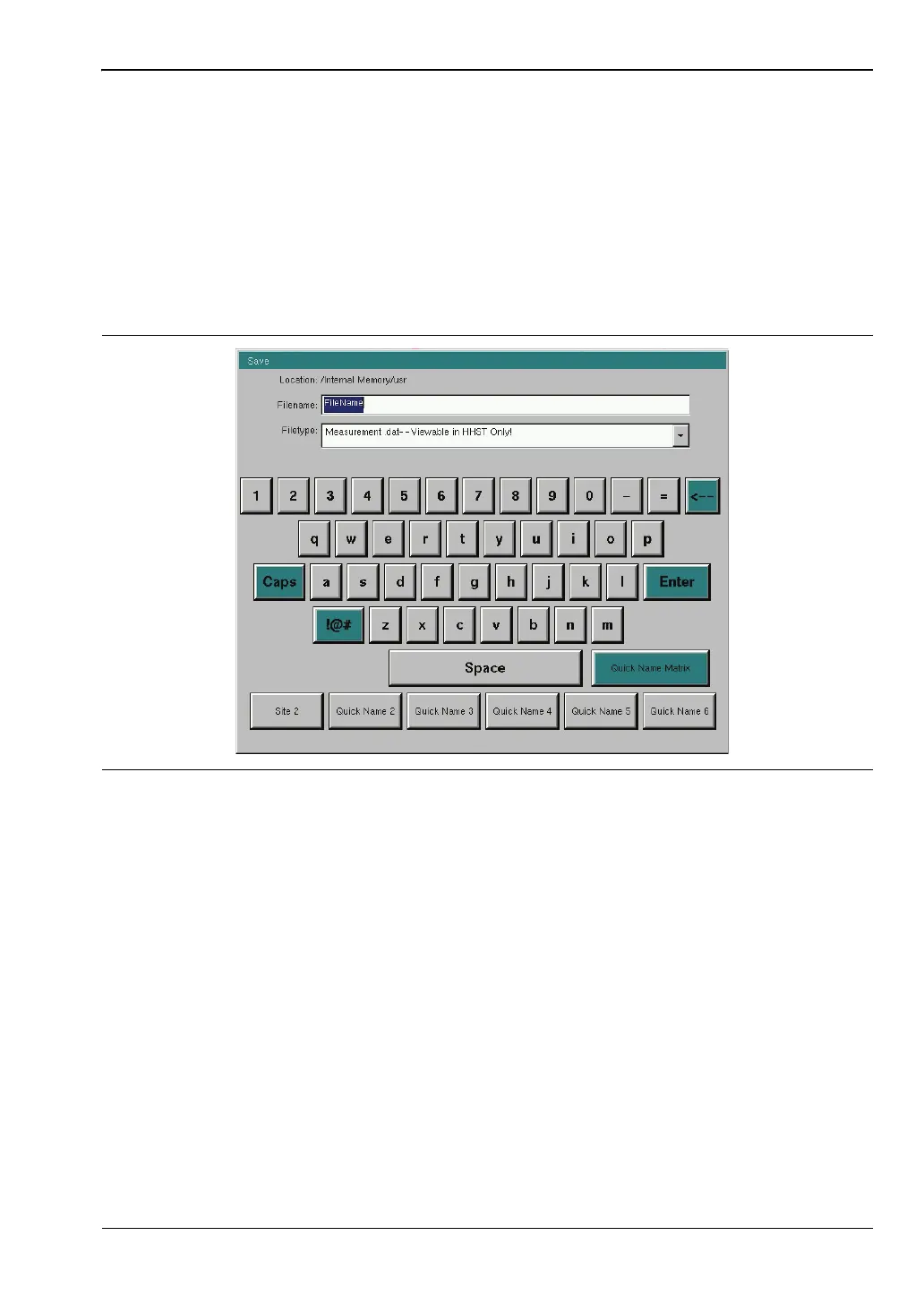 When entering text, as when saving a measurement, the touch screen keyboard is displayed