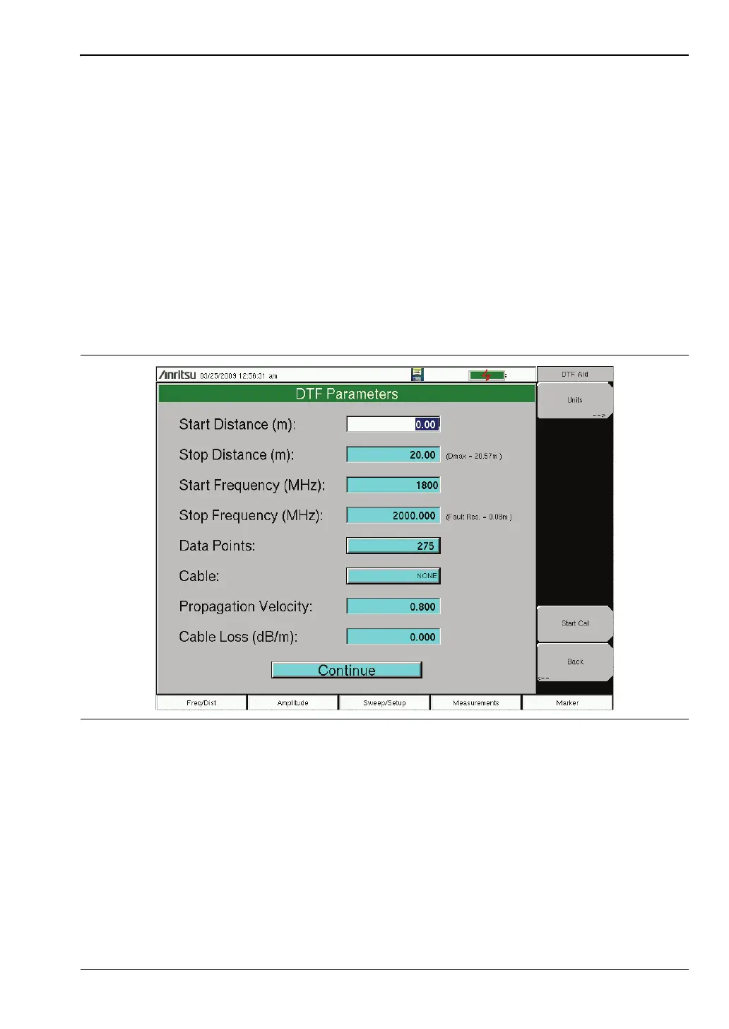 1. Press the Measurements main menu key and select DTF Return Loss or DTF VSWR.