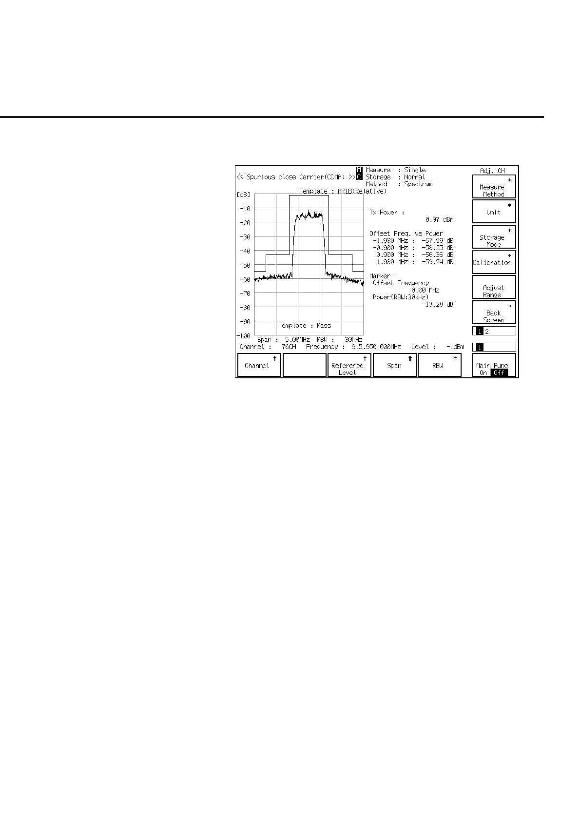 (8) Press the Single key or the Continuous key to start the TX spurious closed to fc