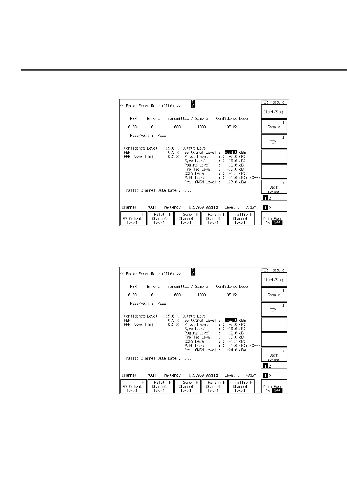 (16) Press the F1 (BS Output Level) key and set BS Output Level at –25.0 dBm.