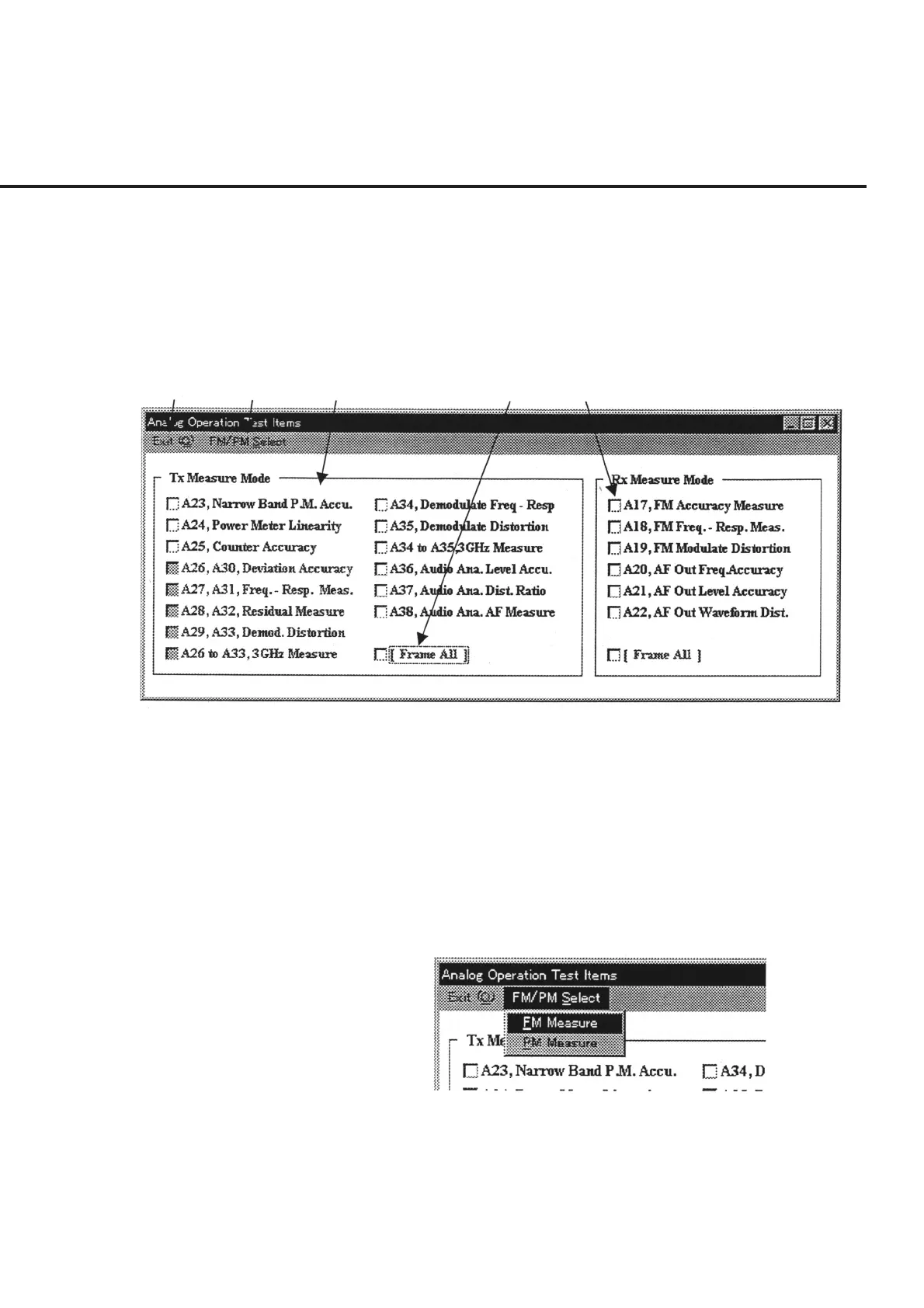 Fig. 7-11 Measurement Item Selection Screen for Analog Section