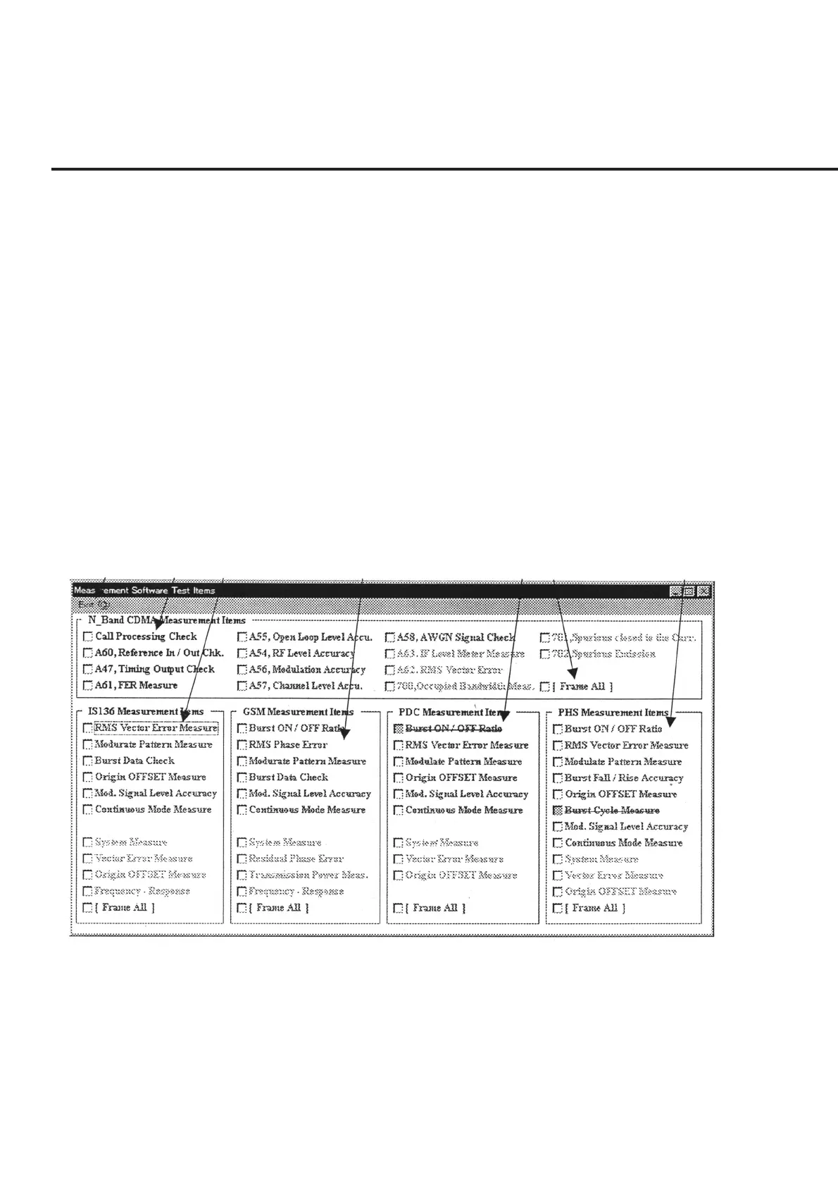 7.5.10.3 Measurement Software Test Items Screen (Measurement Item Selection