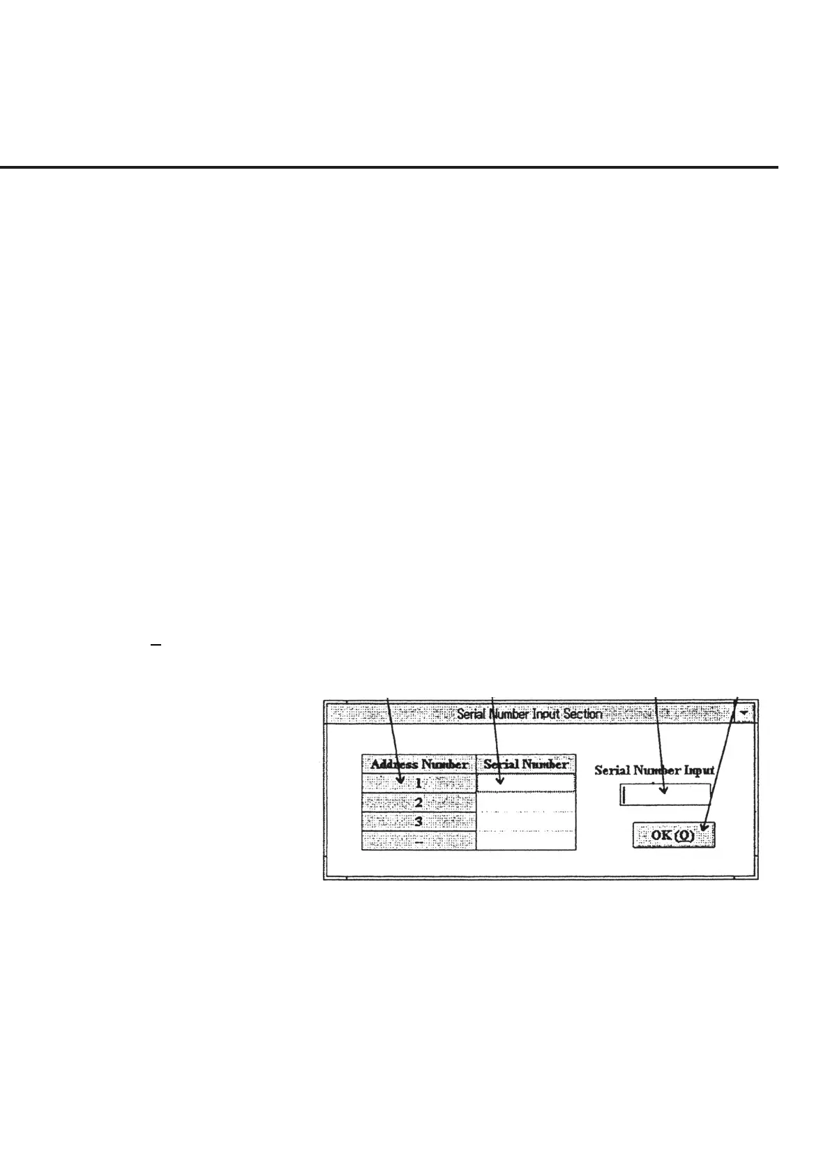 [4] OK (O) (“OK” button) This button is used to complete the serial number input. Clicking this button causes the