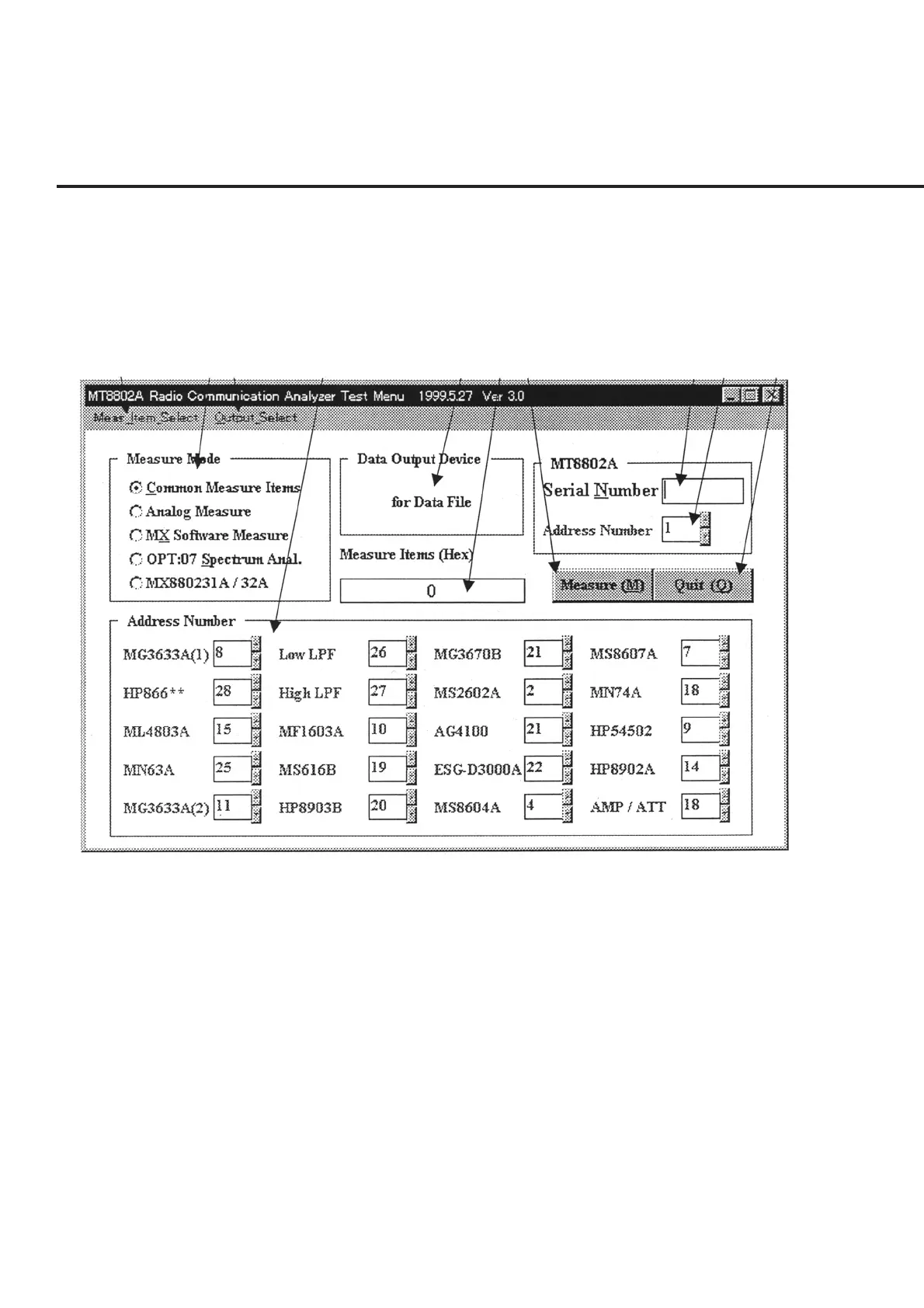 [3] “Output_Select” bar Used for changing the output destination of measured results shown in item [5] “Data