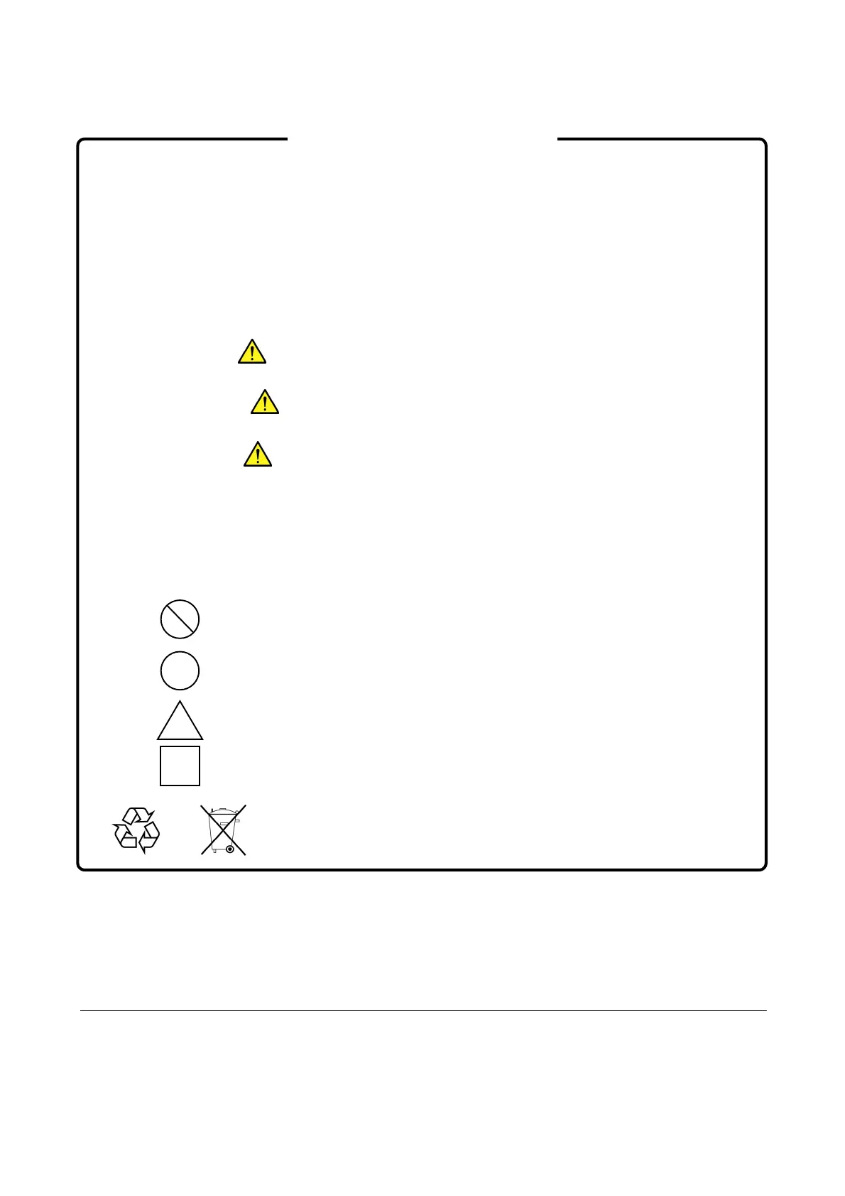 The following safety symbols are used inside or on the equipment near operation locations to provide information