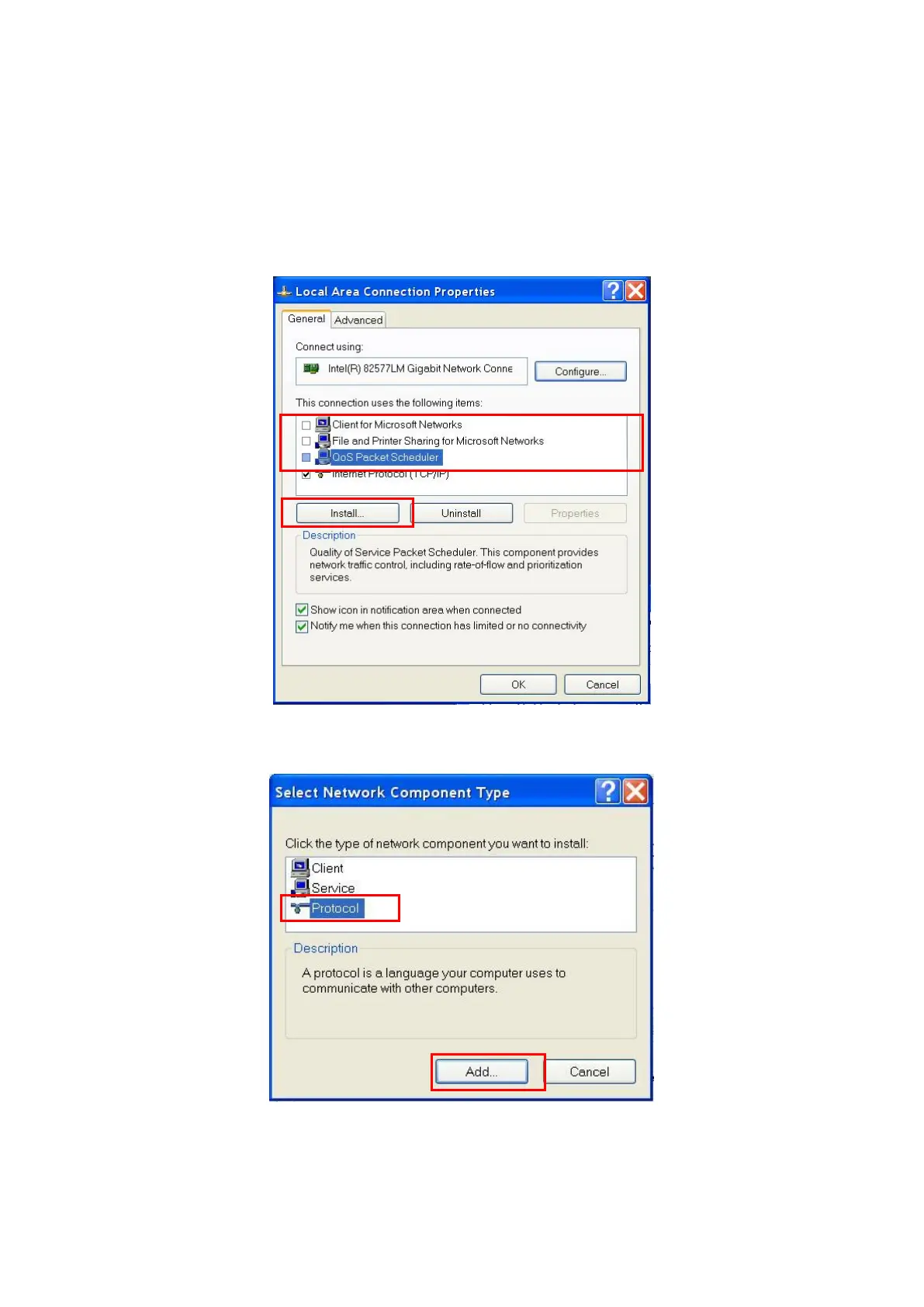 Figure 5.1.2.2.1-2 Network Component Type Selection Screen (Windows XP)