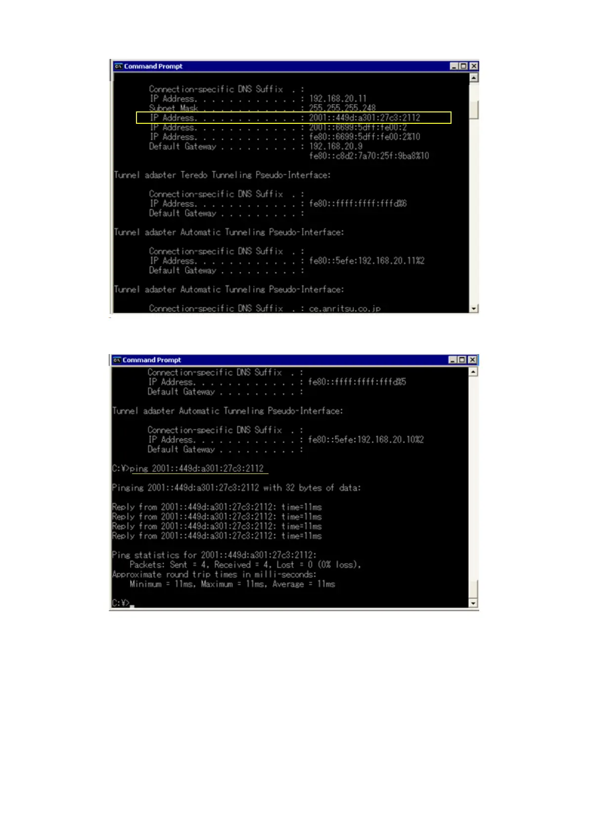 5. Run the Ping command at the Command Prompt screen of the server PC to confirm the connection status.
