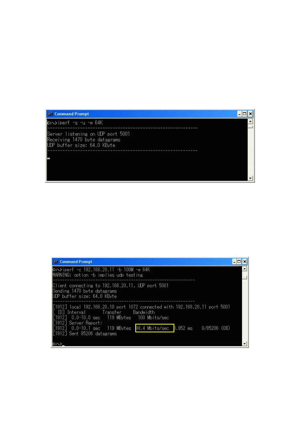 - UDP: [iperf -c 192.168.20.11 -b 100M -w -64K]