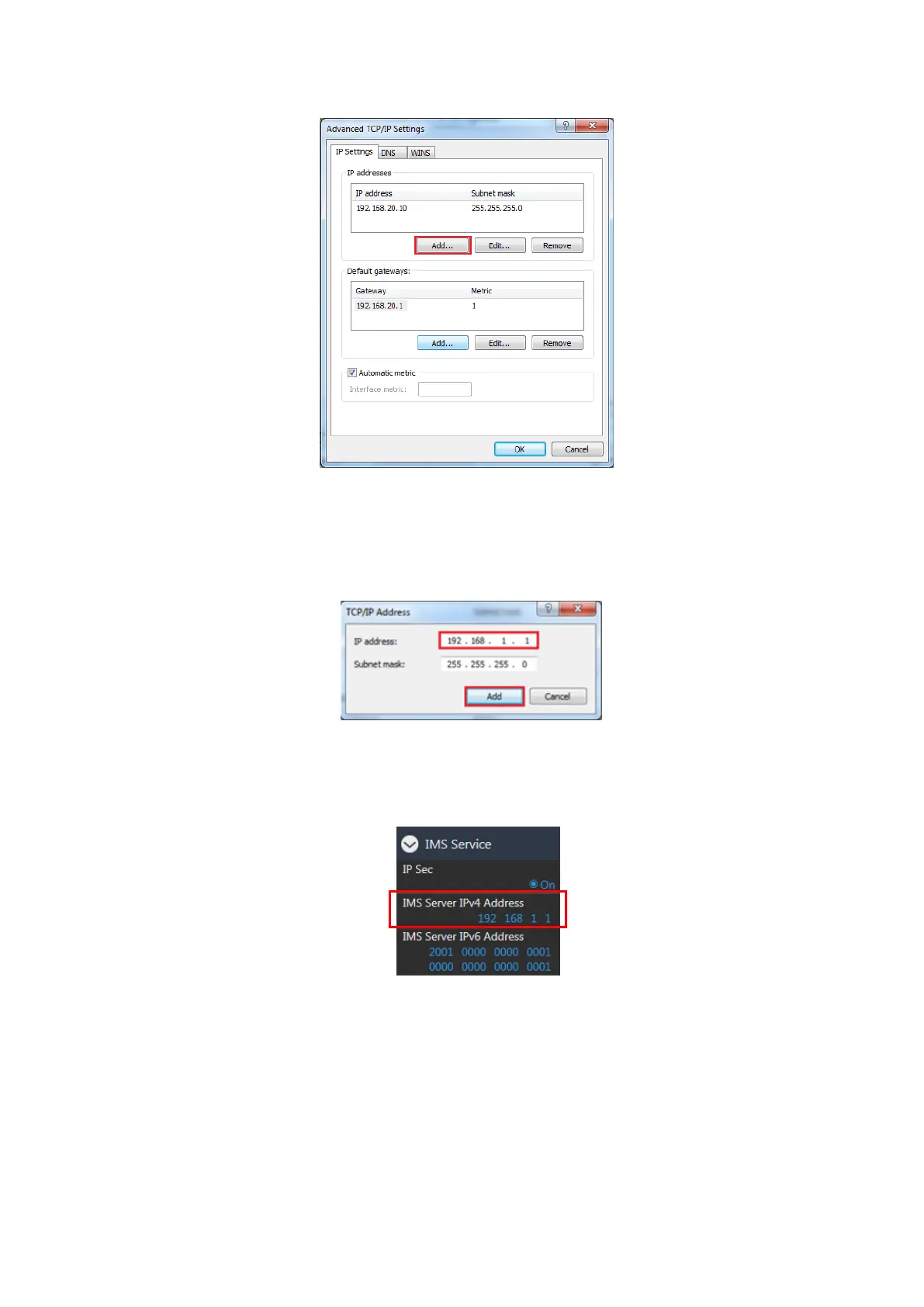 NOTE: Set the same IP address as with IMS Server IPv4 Address setting in the IMS Service settings of