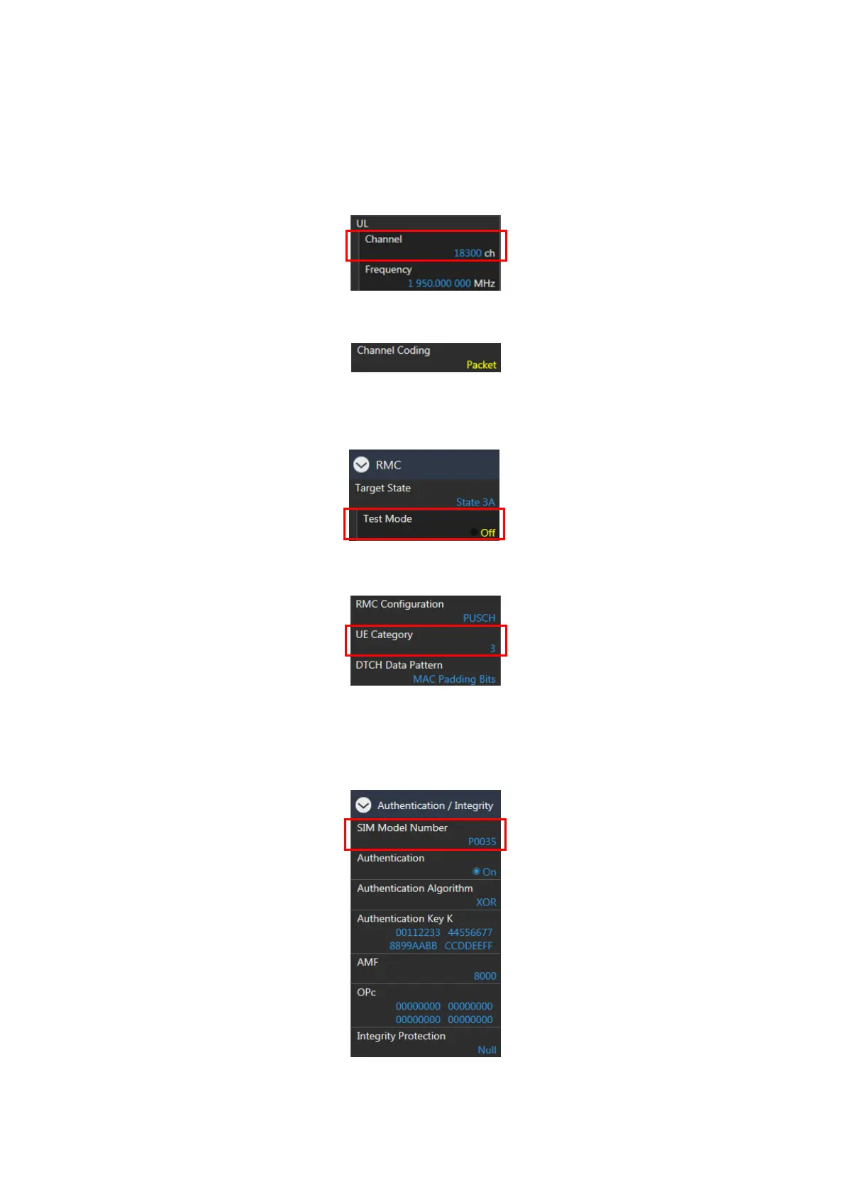 Numbers , the settings for Authentication Algorithm, Authentication Key K, AMF, OPc must be