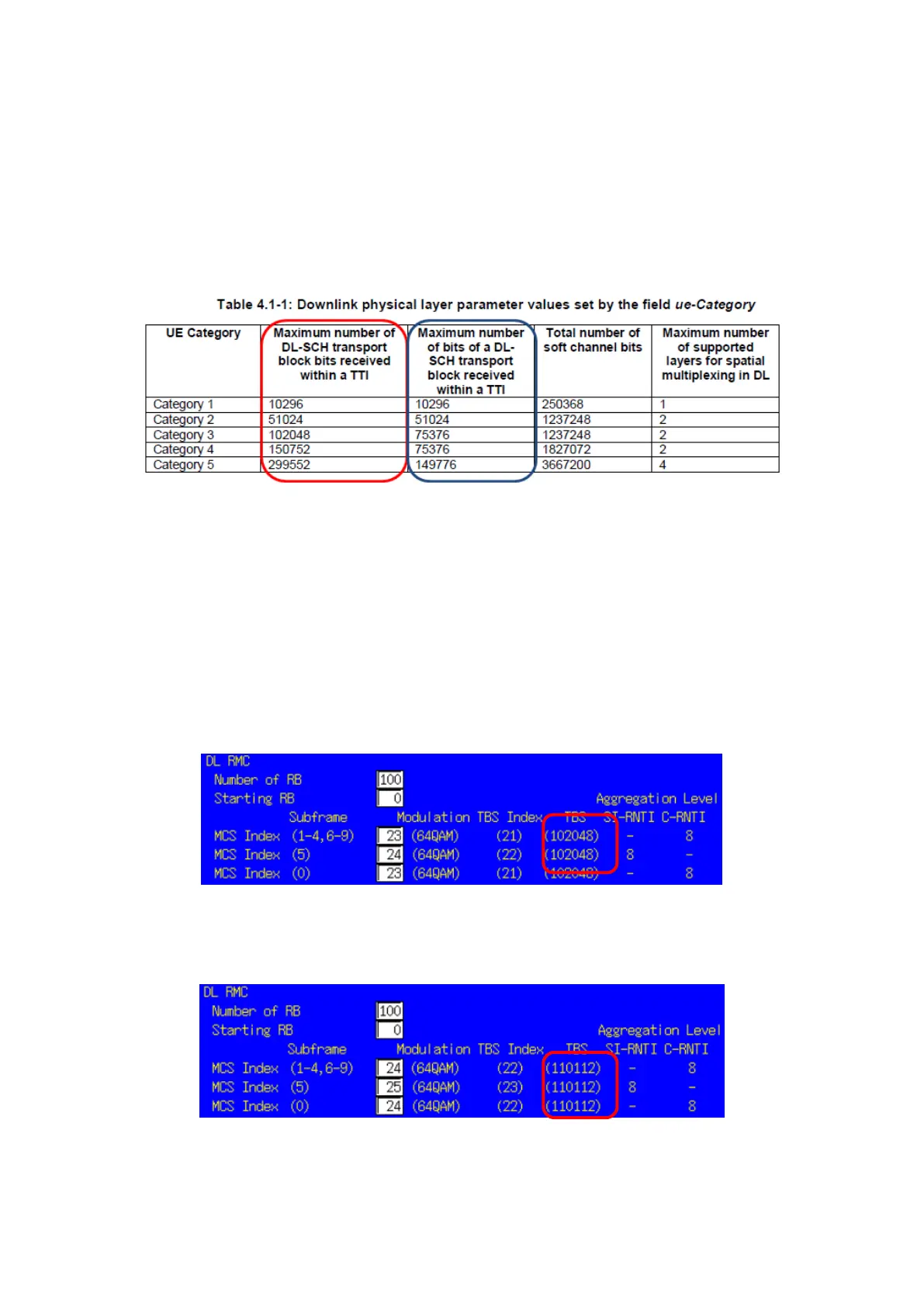 On the other hand, at the DL RMC setting shown in Fig. 2, since TBS is larger than 102048 and exceeds the Rx