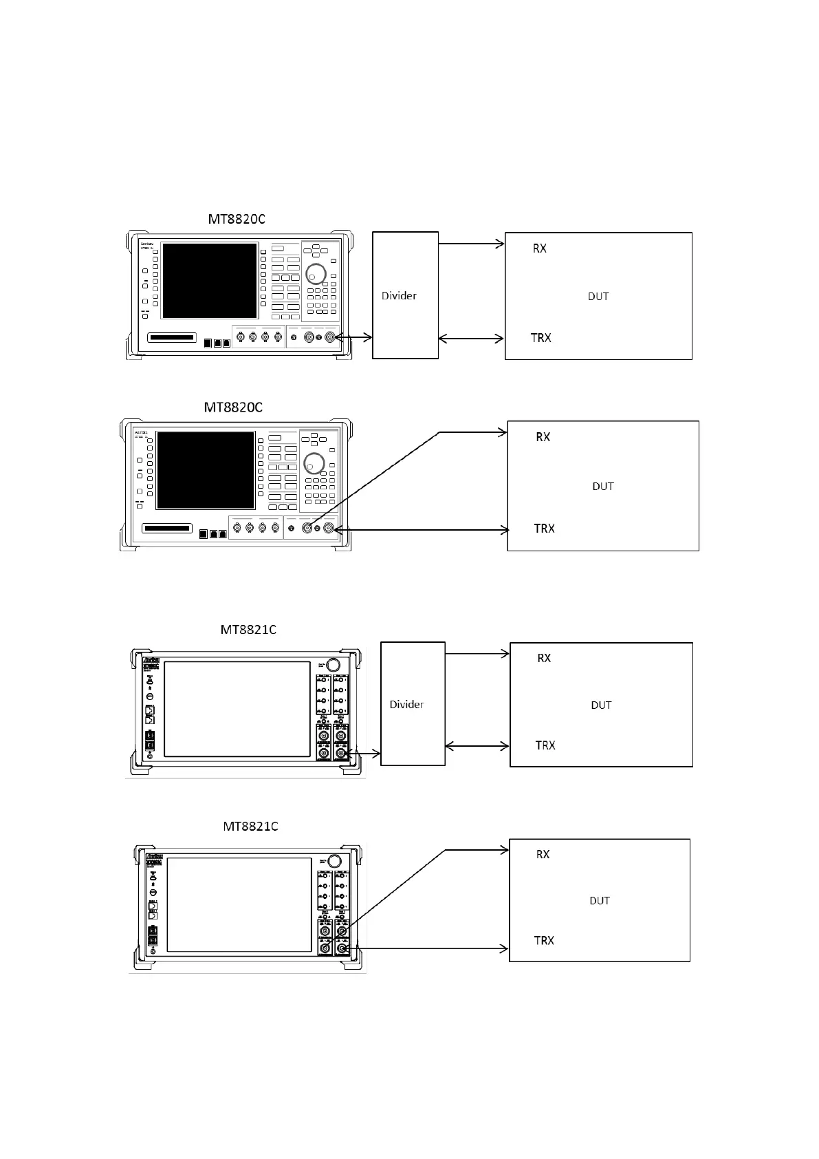 Figure 2.1.1-3 Connection Diagram for Single Cell, Tx and Rx Test (MT8821C, using divider)