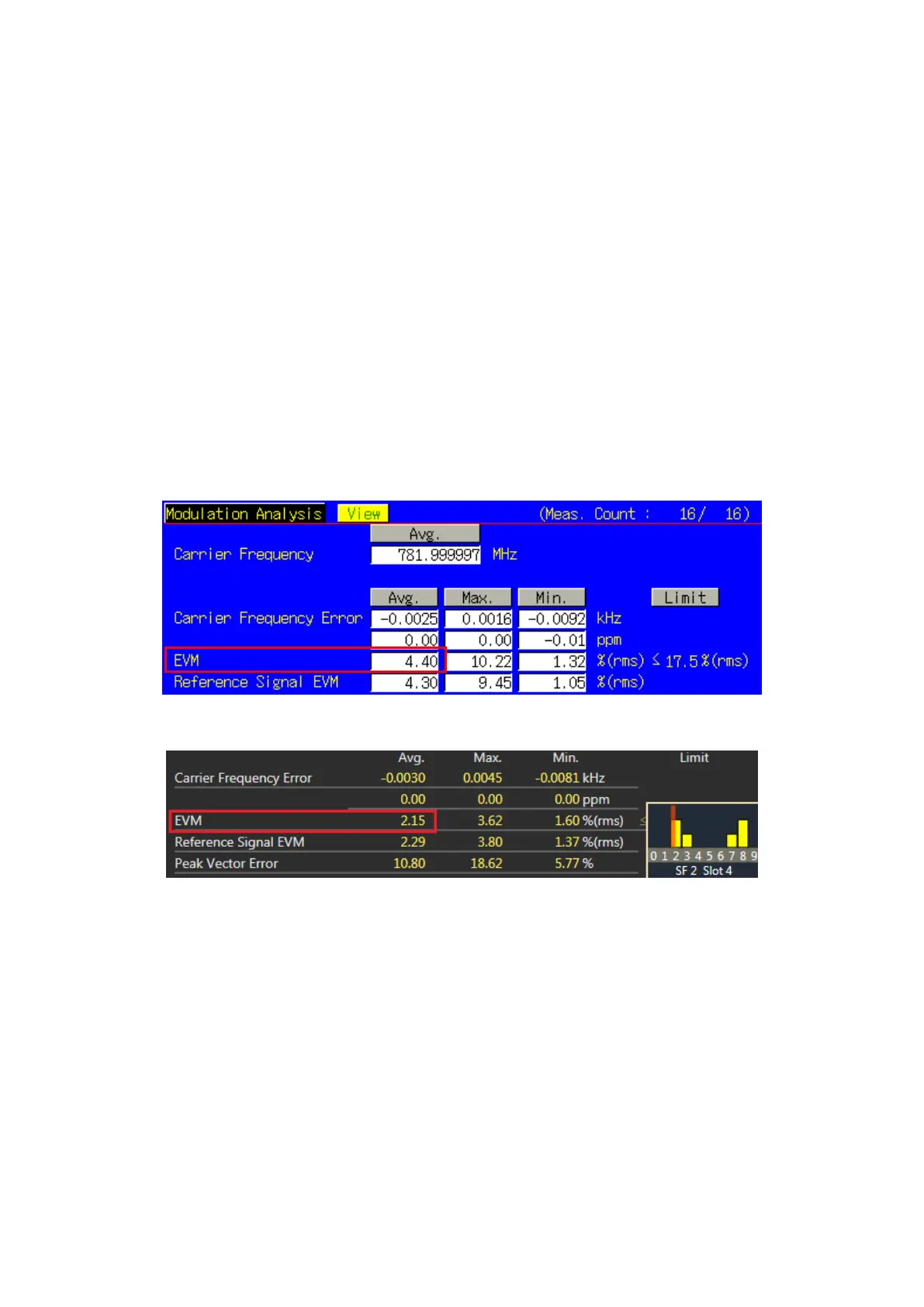 Figure 3.1.22-2 Example of Measurement Result when Test Parameter is TX3 - EVM with Exclusion Period (QPSK)